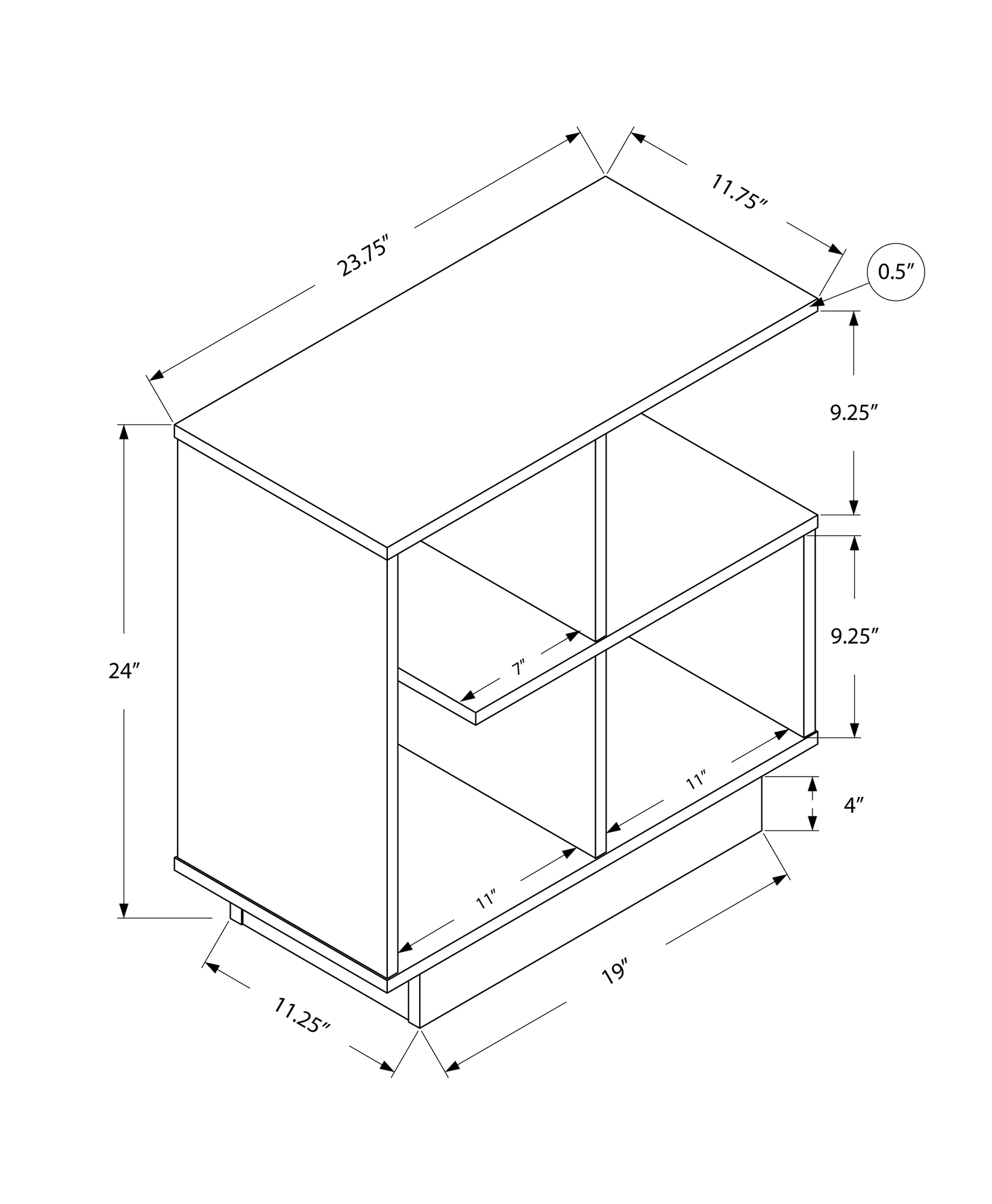 This contemporary and architecturally inspired side accent table combines modern style with storage options in one versatile piece. The rectangular tabletop is spacious enough to place your tablet, book or drink. The four open shelves at the bottom in var