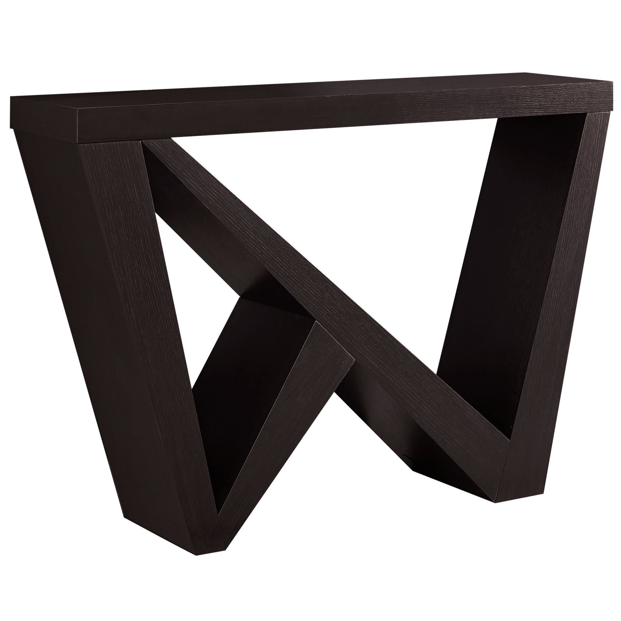 Make a bold statement in your living room or hallway with this 48″ long cappuccino accent hall console table. Featuring a thick panel design, asymmetrical lines and an edgy modern appeal this table will surely make an eye catching addition to your living