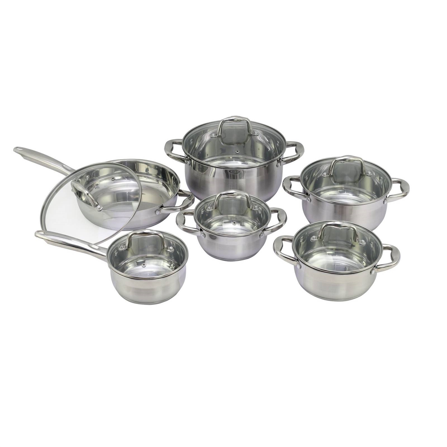 Reinvent your kitchen with this 12 Piece Durable Stainless Steel Cookware Sett. Everything you need for delicious meals, this stainless steel set is long-lasting and durable while delivering even heating with induction capsule bottoms. Each of the 6 pans includes a clear glass lid and stainless steel handles to ensure easy transportation to and from the stove. A satin exterior finish ensures an elevated, modern look to complement your kitchen.