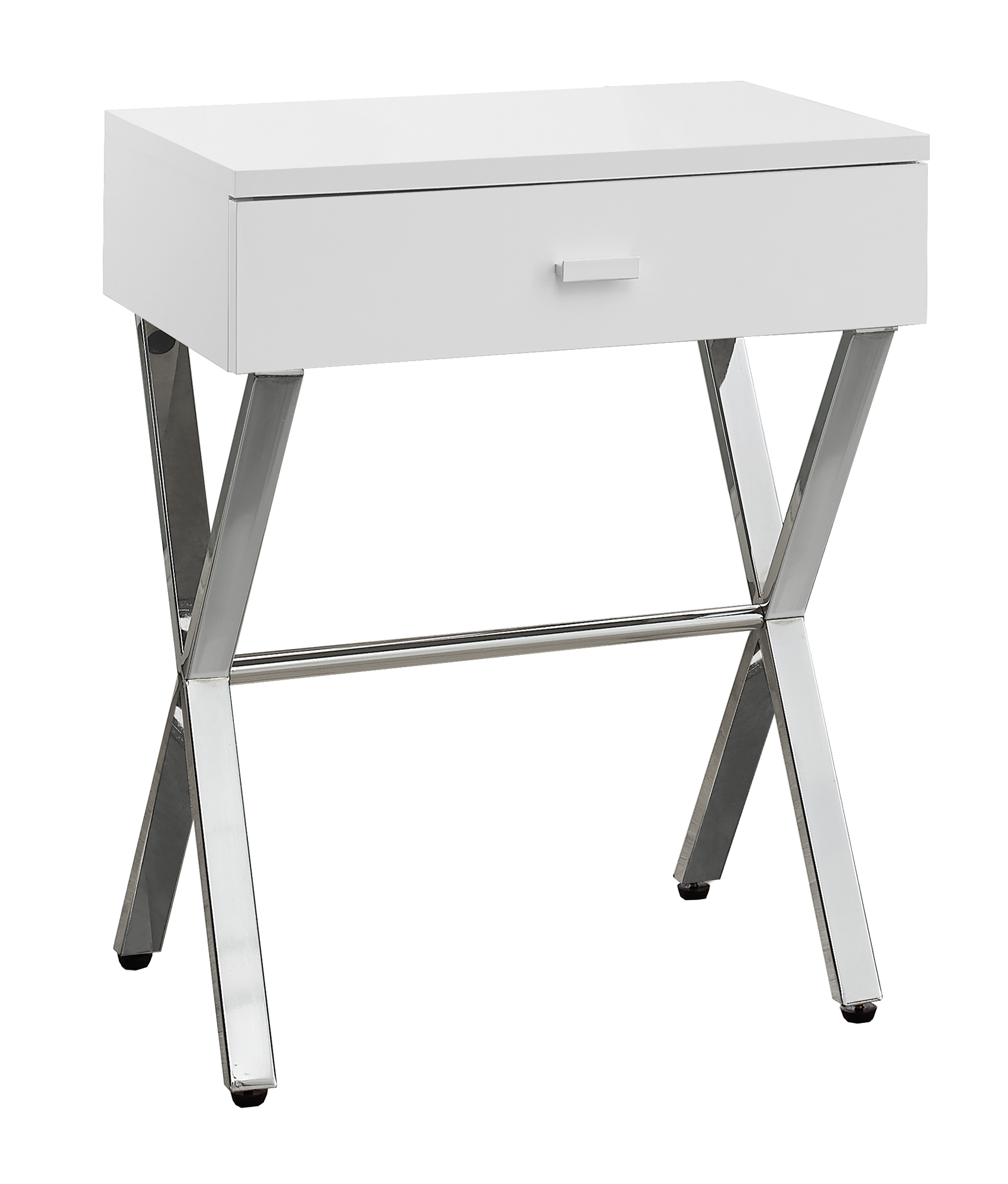 12″ x 18.25″ x 22.25″ White Finish and Chrome Metal Accent Table