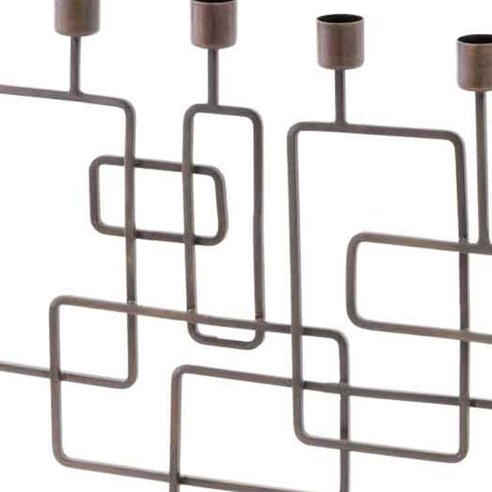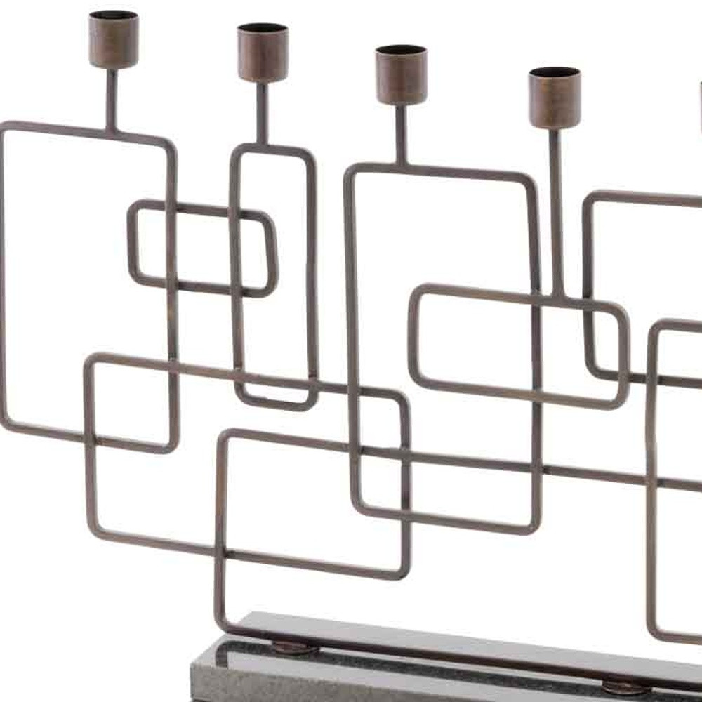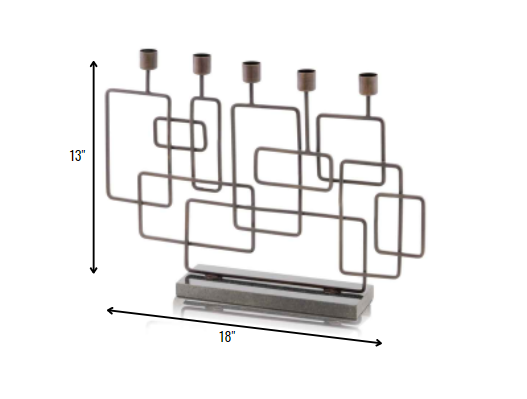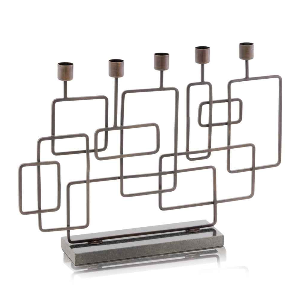 The Cuadras Candleholder has a Combination of Squares and Rectangles that are joined to enhances the Beauty of this Accessory. This 5 Lite Candleholder has an Antique Brass Finish with a Black Granite Base creating a Modern Design.