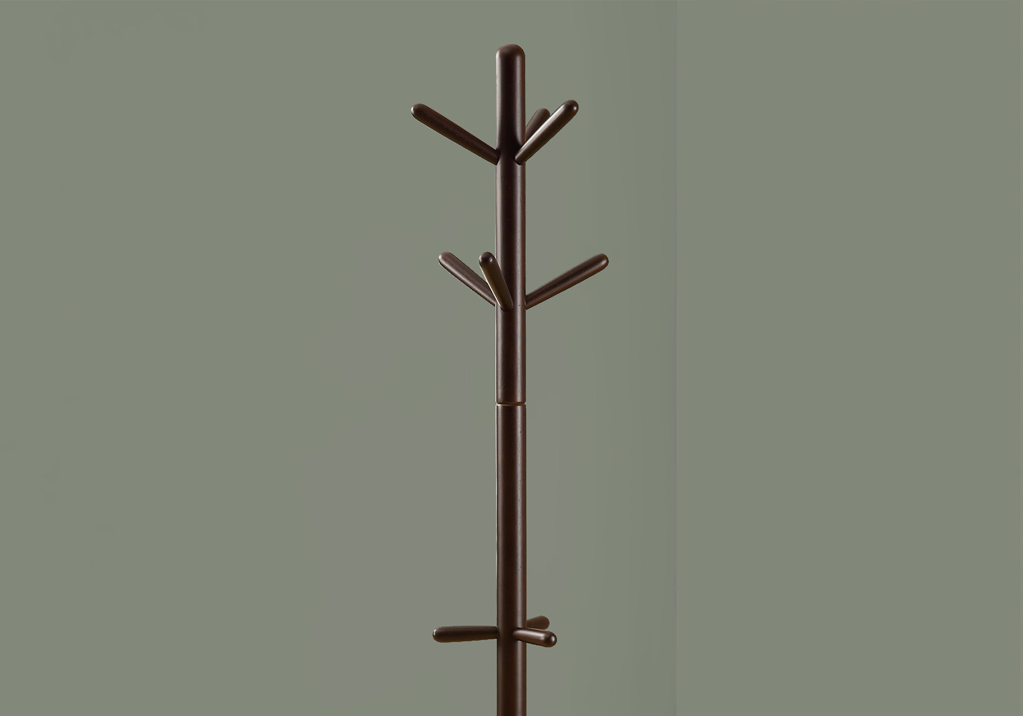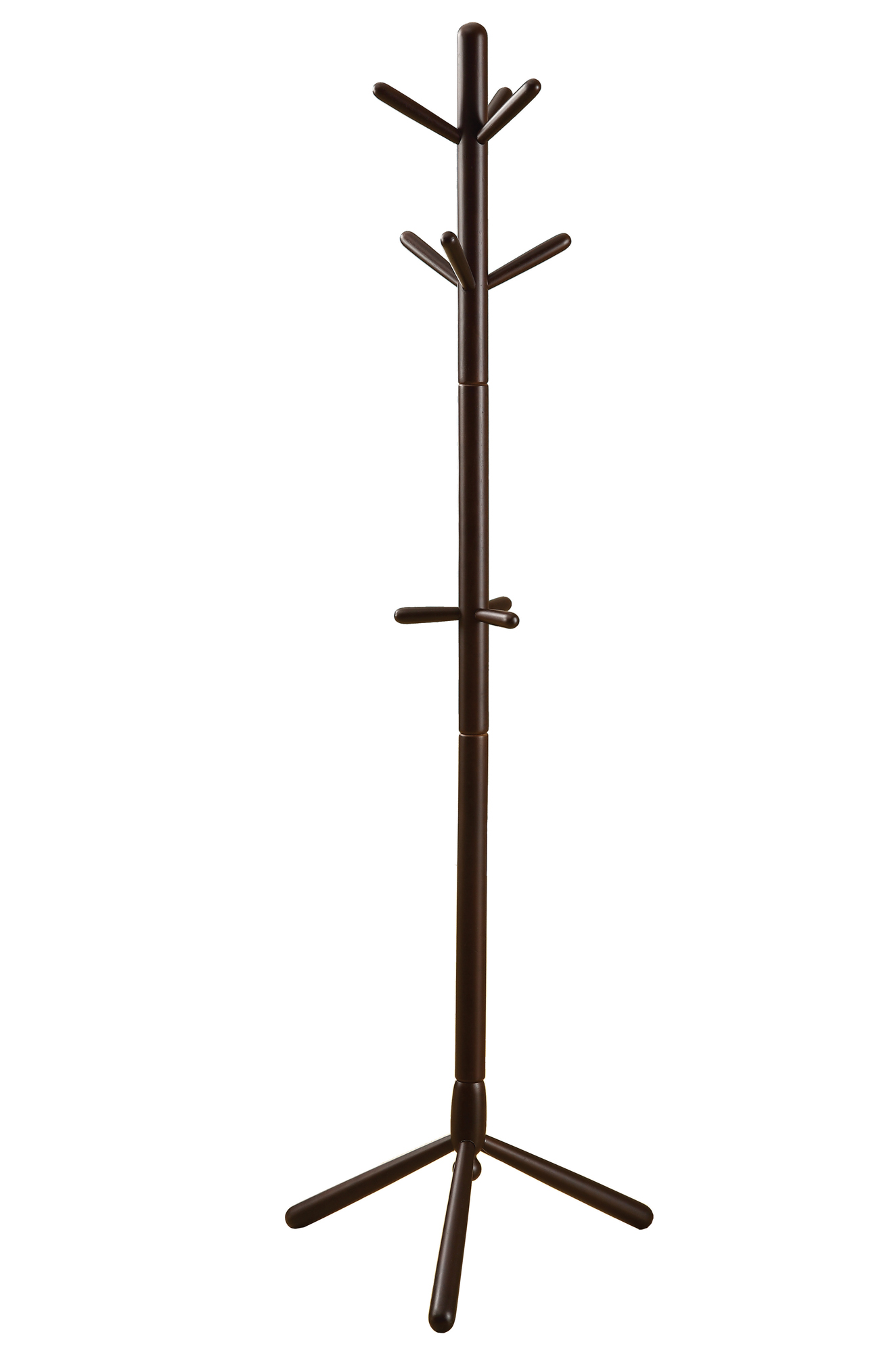 Organize your home with this contemporary solid wood coat rack. A beautiful lustrous cappuccino finish and a sturdy pedestal base bring plenty of stylish storage into your living space. The simplicity of the design makes it easy to create functionality in