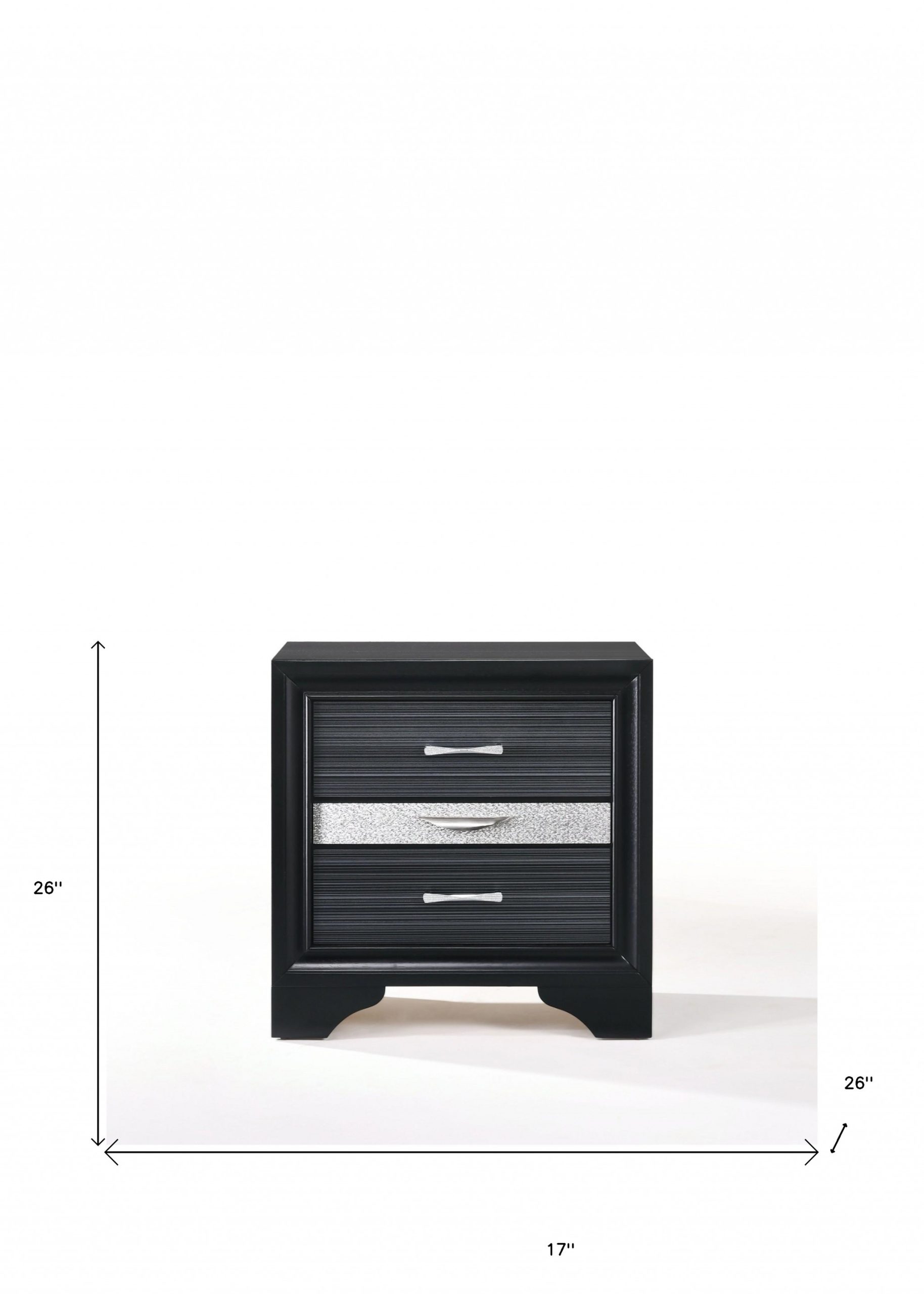 The 17″ Rectangular Three Drawers Nightstand With Solid Wood Top includes 3 drawers and light grey acrylic trim that showcases style that is designed to impress. Made of high-quality rubberwood and chipboard materials, it demonstrates delicate craftsmanship and has the perfect design to enhance your room.