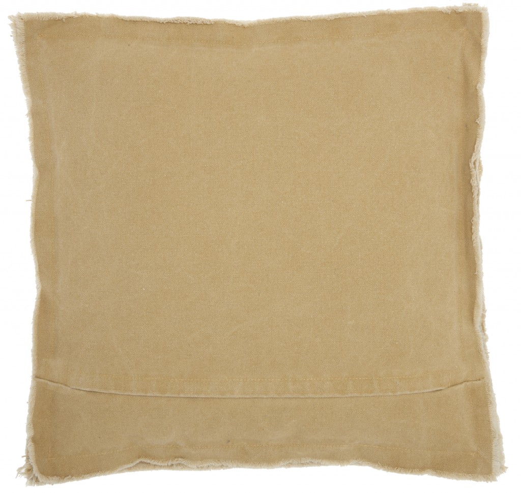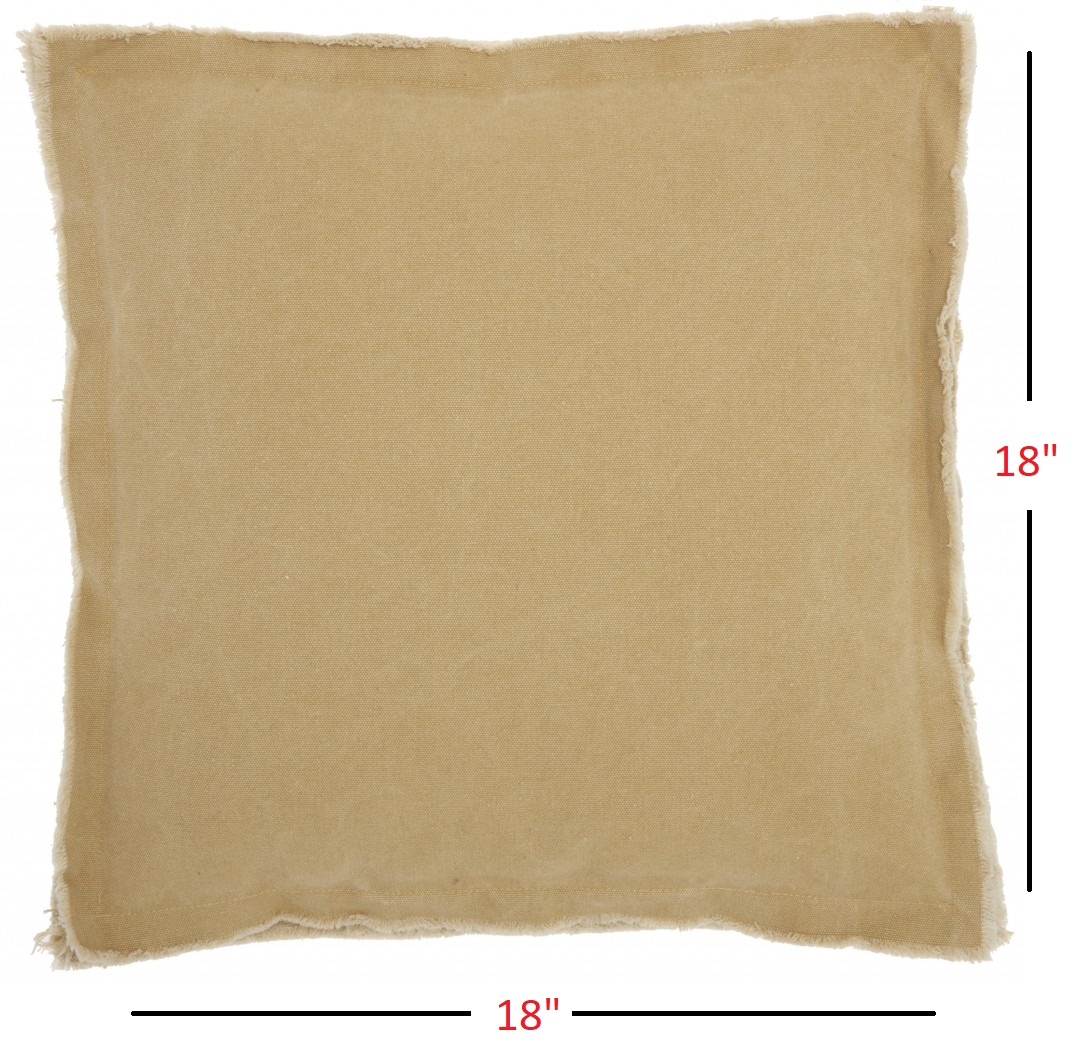 18″ Boho Tan Frayed Edge Canvas Throw Pillow