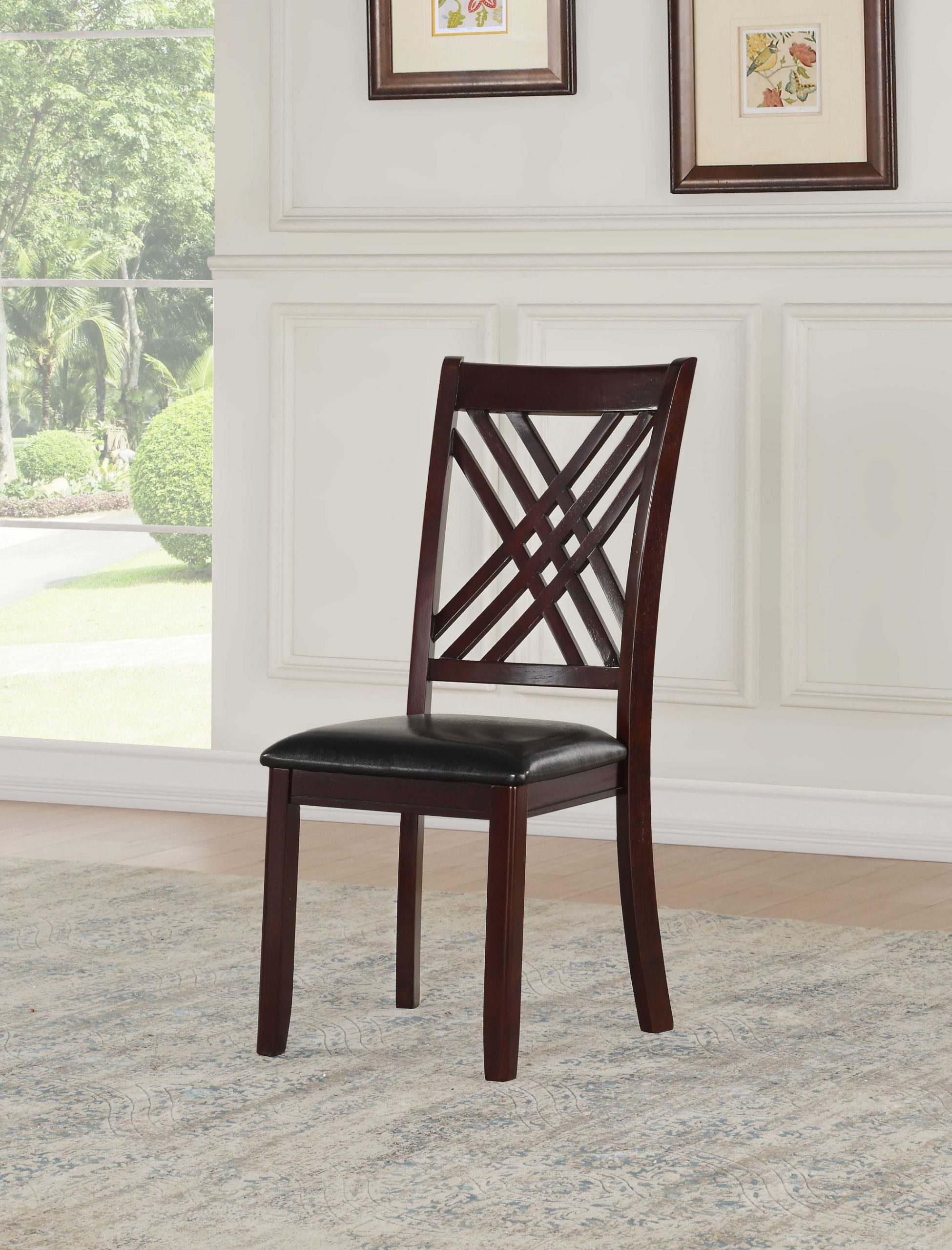 Carved out of top quality wood, this unique side chair is designed with a blend of transitional style and functionality that will elevate any room setting. Our side chair is anchored by a solid black finished wooden frame and an XX-shape backrest to complement the whole inspiring design. While the wood tapered legs also in black finish syncs seamlessly with the black padded seat to solidify the outstanding beauty of this masterpiece. The side chair that is available in a set of two will definitely enhance the level of comfort your home can offer.