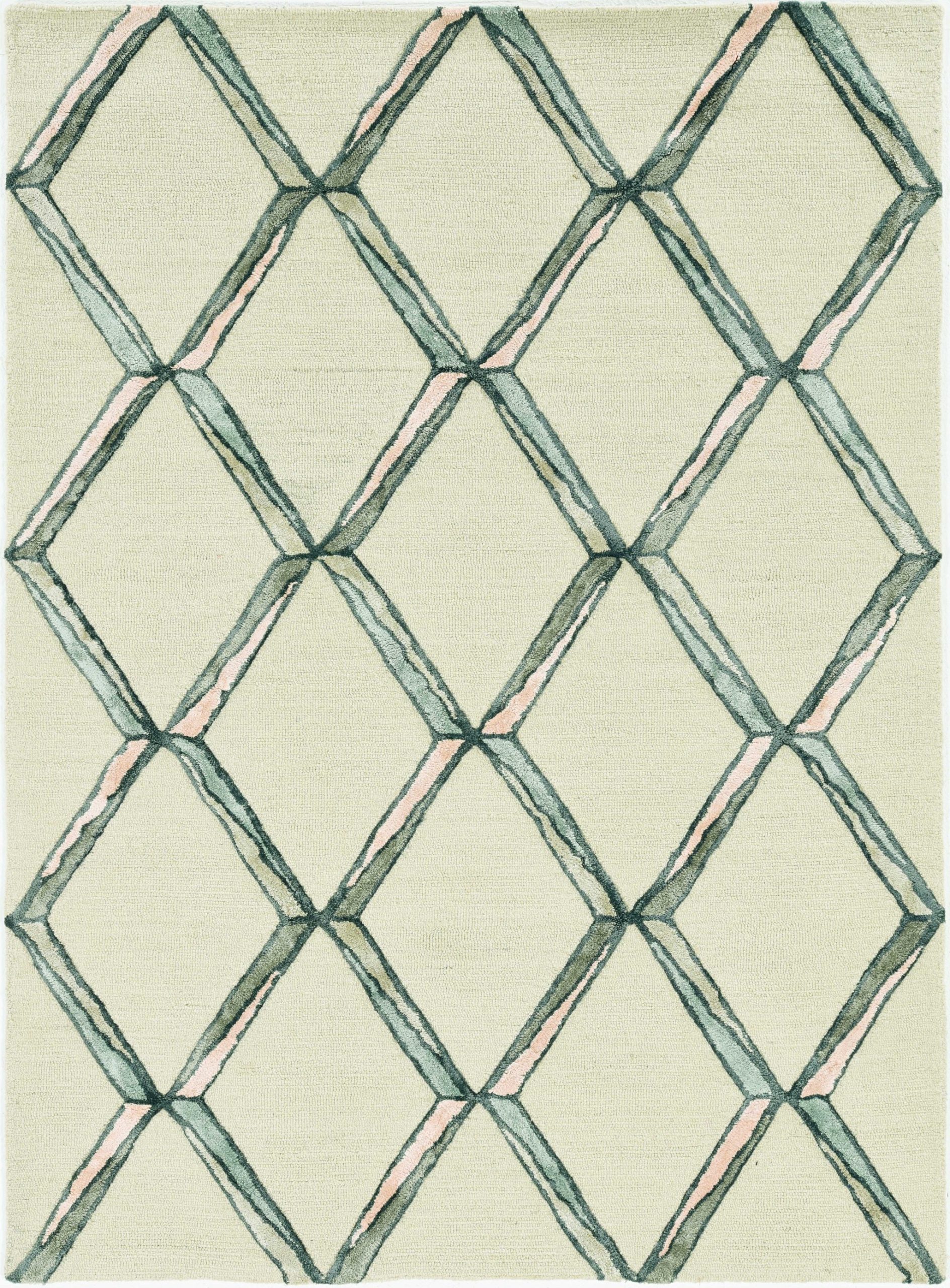 2′ x 8′ Cream Geometric Diamond Wool Runner Rug