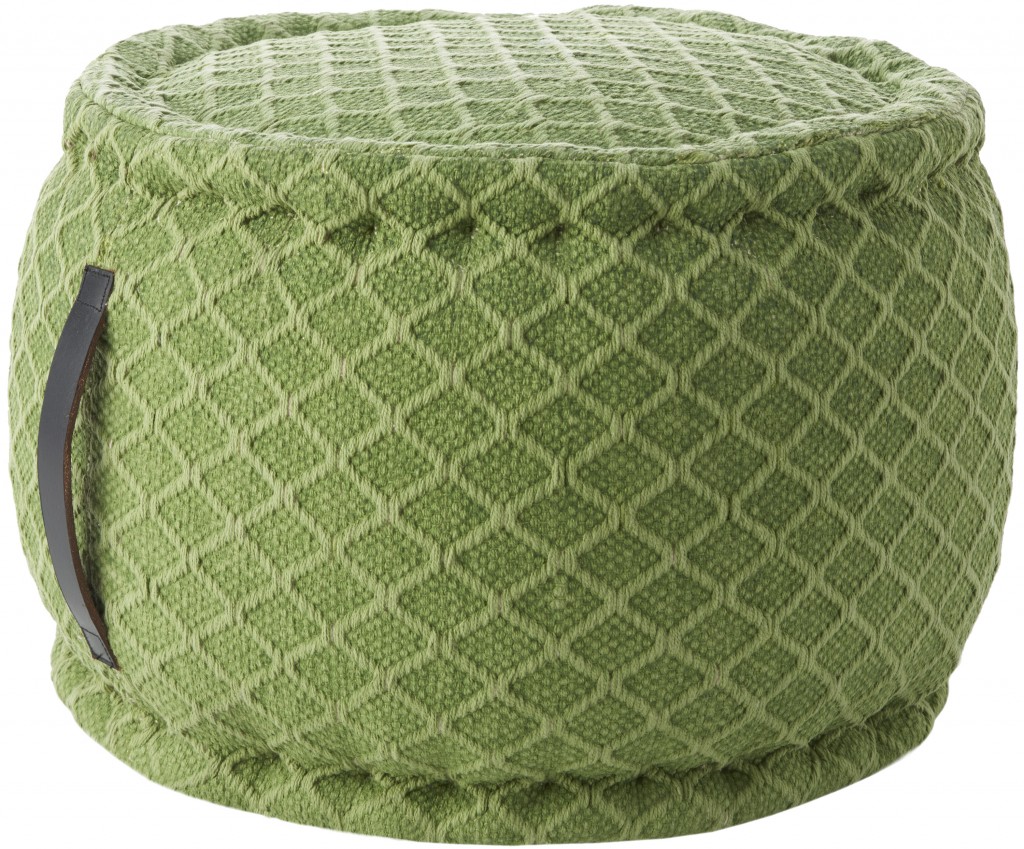 20″ Green Diamond Pattern Round Pouf Ottoman