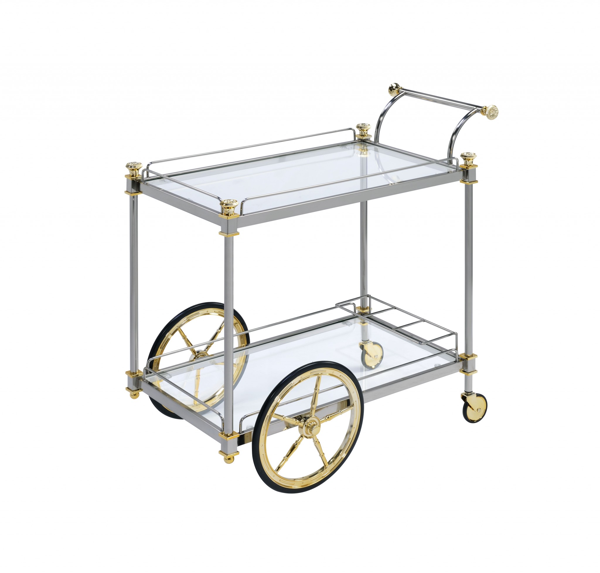 20″ X 31″ X 31″ Silver Gold Clear Glass Metal Casters Serving Cart