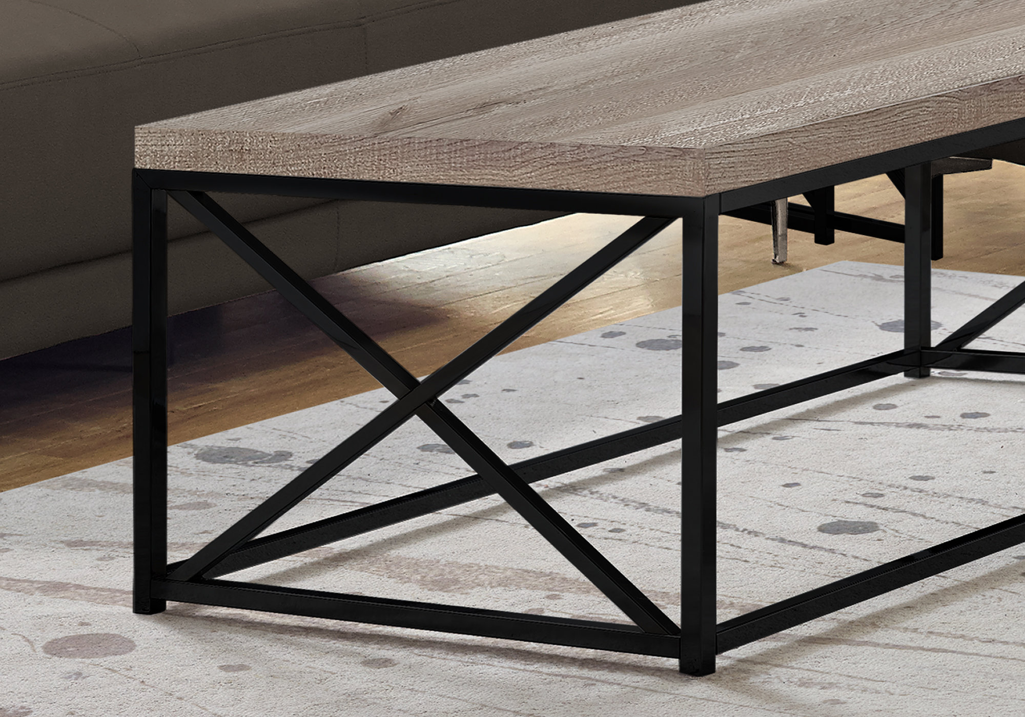 22″ x 44″ x 17″ Taupe Black Particle Board Metal Coffee Table
