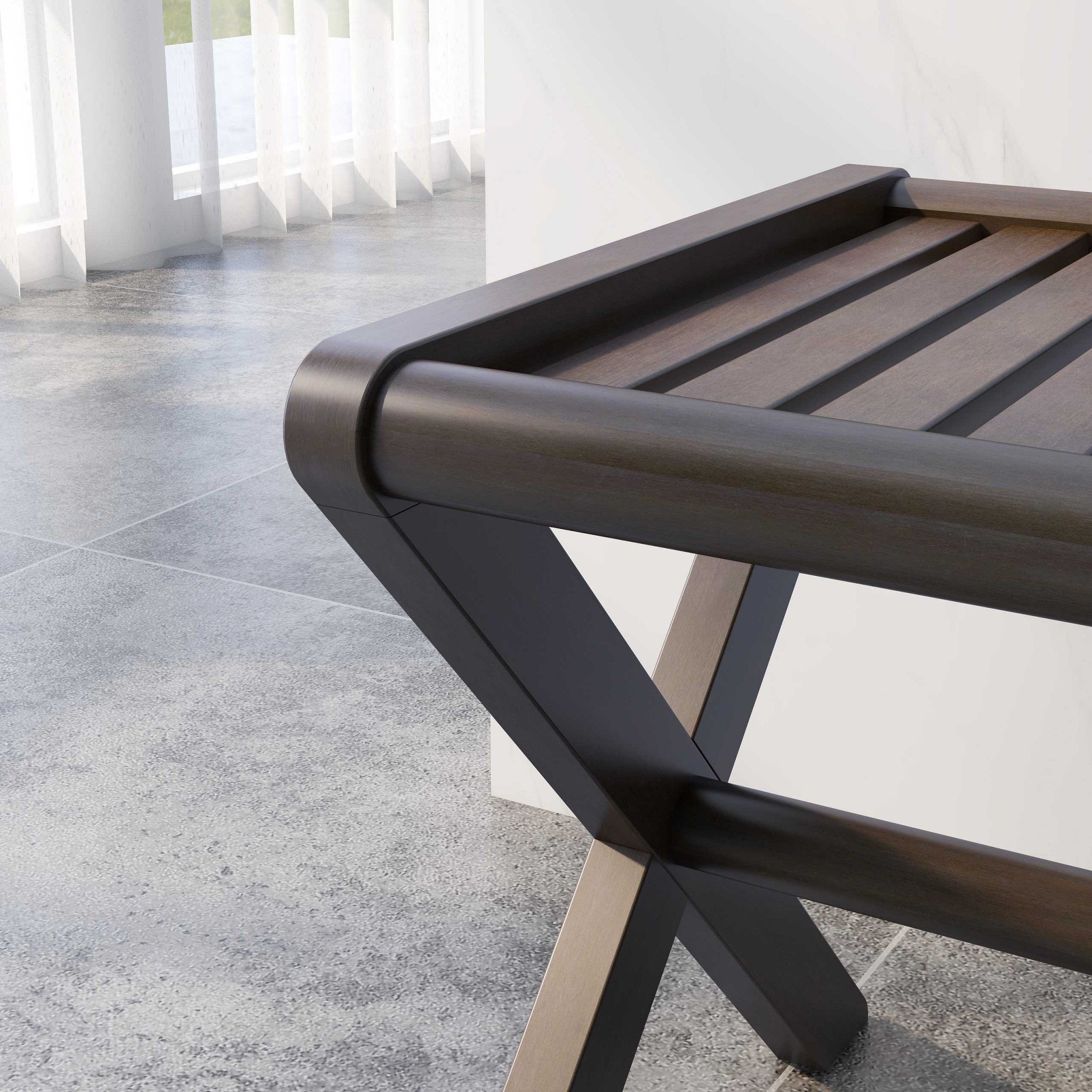 Bring a spa like atmosphere to your space with this 23″ Dark Brown Finish Wood Slat Stool or End Table. Super sturdy construction from solid wood combines with a warm espresso dark brown finish to give this stool a great look that can be used in most any room. 17″ x 22.75″ x 16″