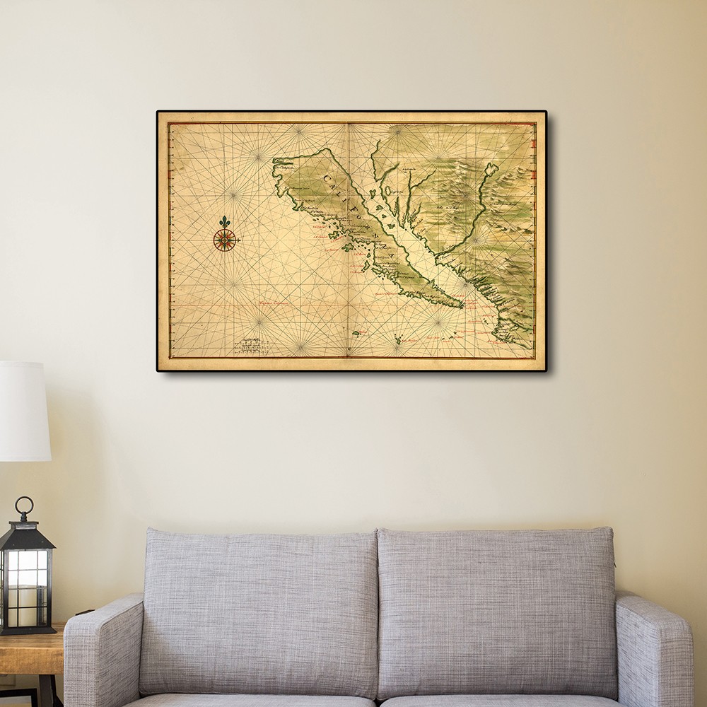 24″ x 36″ California as an Island c1650 Vintage Map Wall Art