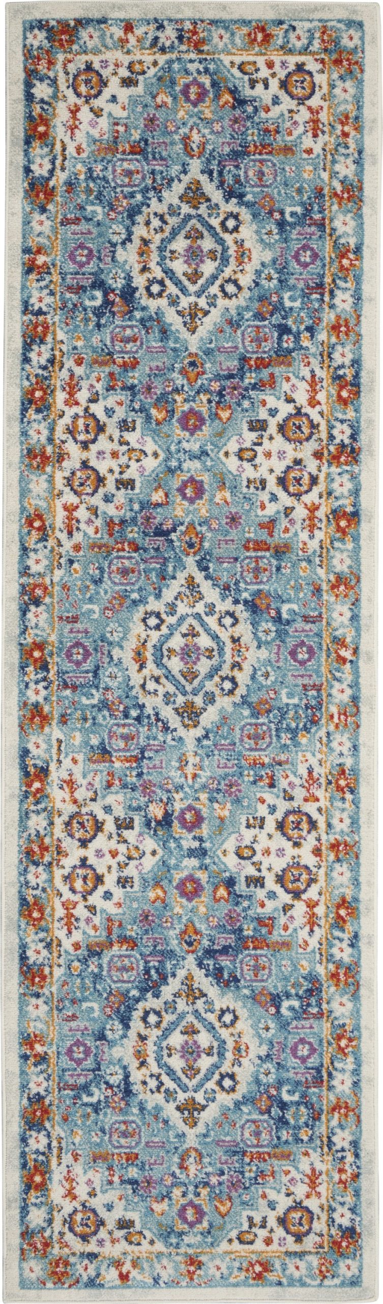 2?x 8?Ivory and Blue Floral Motifs Runner Rug