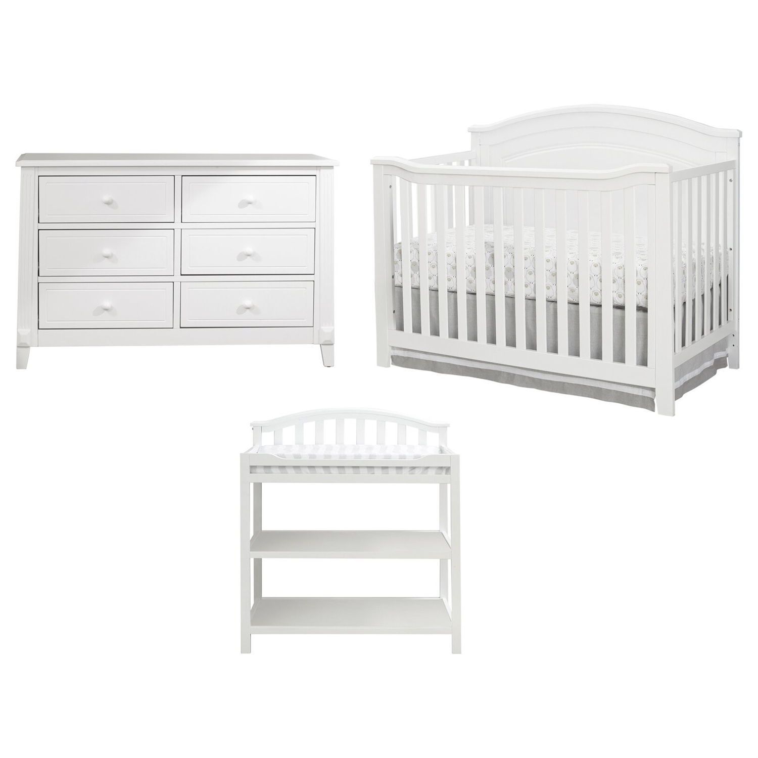 3 Piece Crib Changing Station 6 Drawer Dresser Nursery Furniture Set White