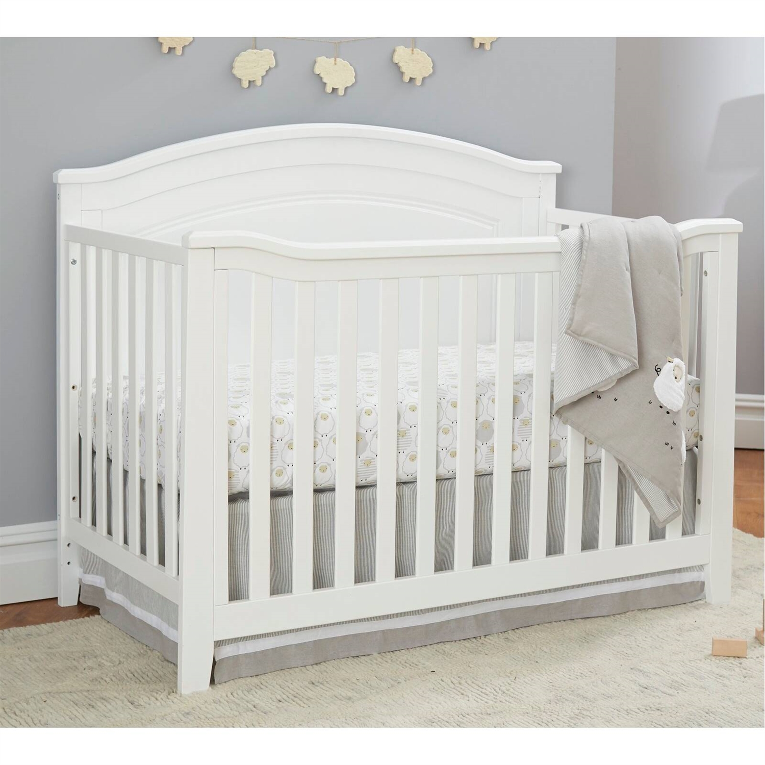 Give your nursery a Modern look with the cottage-inspired styling of the Baby’s First 3 Piece White Convertible Standard Nursery Furniture Set. The 4-in-1 Convertible Crib boasts a solid panel arched headboard with open slats for a timeless appeal. The 3 piece complete nursery set offers a crib, changing table, changing pad, and 6 drawer storage dresser. Assembly required.