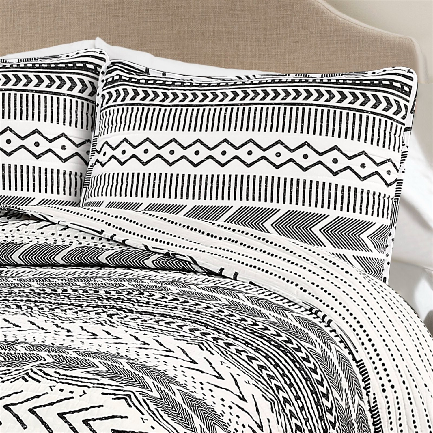3 Piece Scandinavian Black White Reversible Cotton Set in King