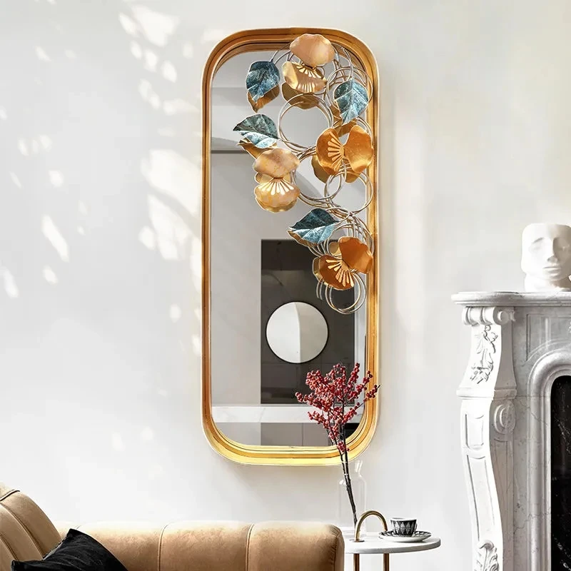 32*82cm French light luxury living room background wall creative petal wall metal decoration mirror porch bedroom pendant