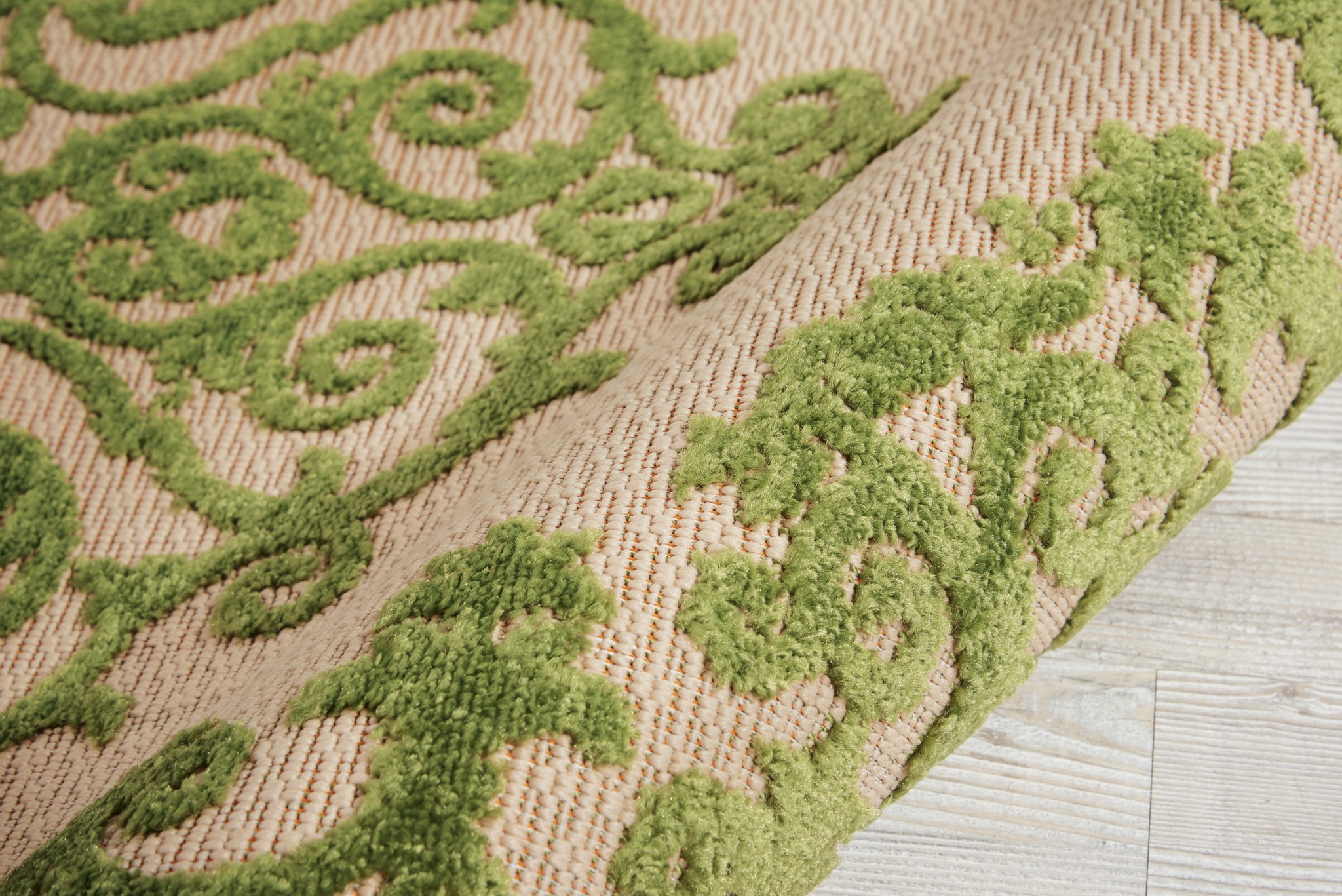 Embody a sense of artistic flair in a sleek and classy ensemble with this calming Green Medallion Indoor Outdoor Area Rug that is bound to bring a new perspective to your contemporary styling. The charismatic design is elevated with the harmonious blend of moss green and two-toned striped beige to create an elegant yet relaxing ambiance. This masterful creation is made in Turkey while introducing 100% polypropylene in its making to ensure speedy spot cleaning and longevity. The flatweave surface with cut pile construction goes perfectly in your porch, doorway, or any outdoor area making an amiable environment for those special outdoor events. Bring your contemporary styling to a masterful finish with this alluring centerpiece that will add a layer of class to your home. 2’8″ x 4′