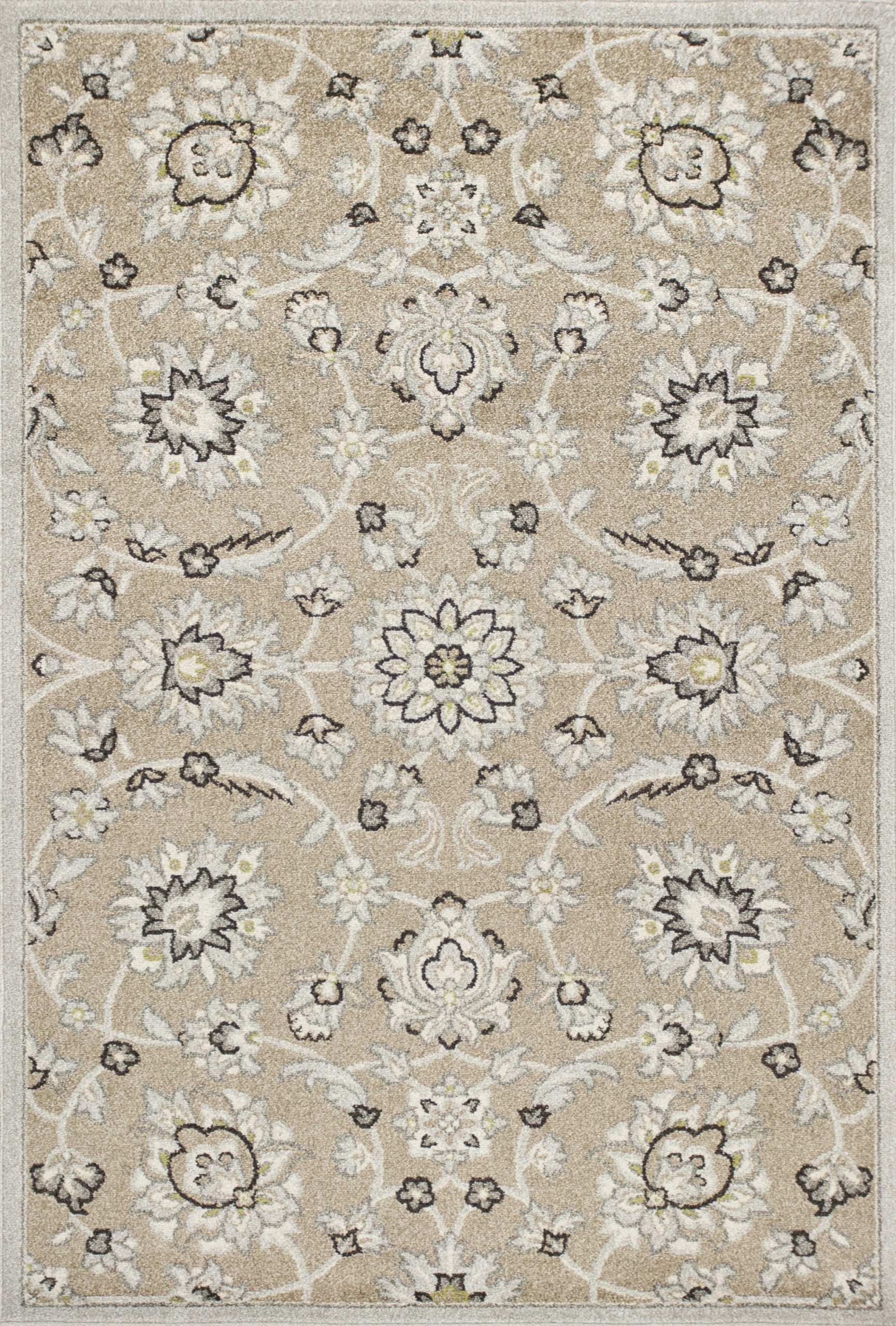 3’x5” Beige Grey Machine Woven UV Treated Floral Traditional Indoor Outdoor Area Rug