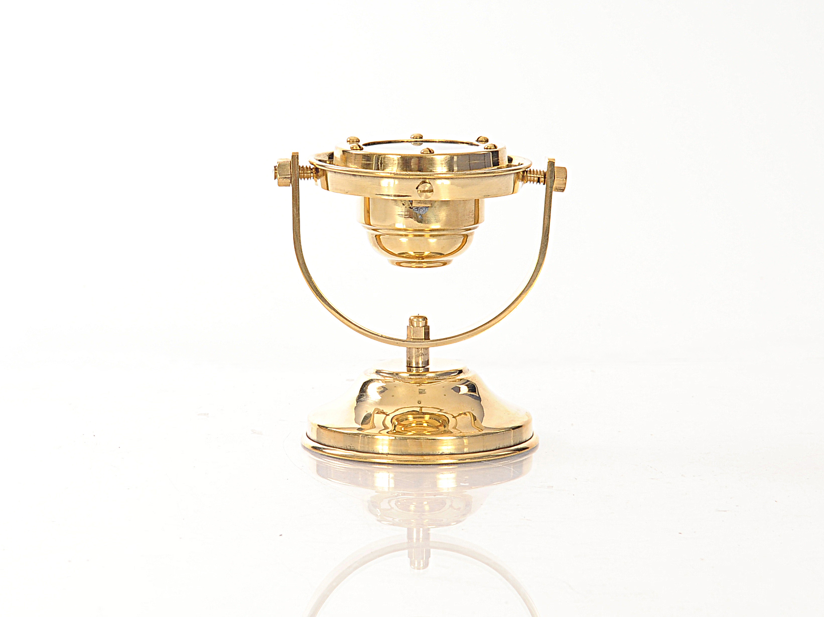 This is a fully functional gimbaled compass. It is made of high quality brass tinted with a golden glow. Each component is crafted with the finest craftsmanship. Available in shiny brass finish. This compass is a great addition to any nautical collection. The item dimensions are: L: 5 inches, W: 4.5 inches, H: 5.5 inches.