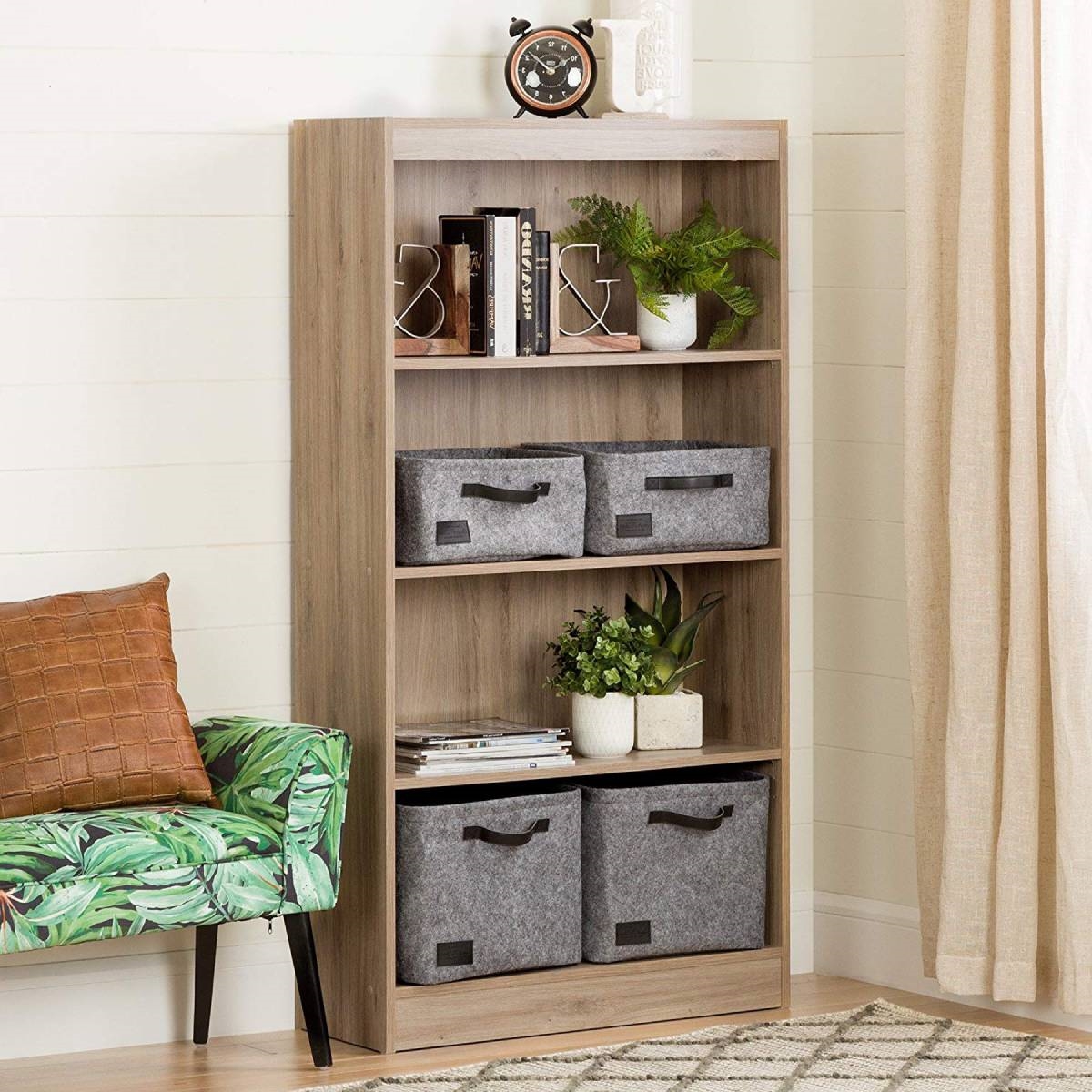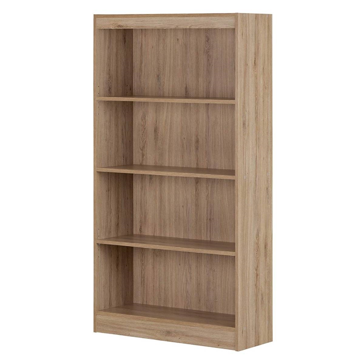 This 4-Shelf Bookcase in Natural Oak Finish is ideal for your binders, books or decorative items. It features 4 open, practical and accessible storage spaces, separated by 1 fixed shelf and 2 adjustable shelves. Its refined lines harmonize seamlessly with virtually any decor. Both functional and attractive with its sleek contemporary styling, this bookcase is sure to enhance the look of any room in your home. It is also available in Pure White, Chocolate, Pure Black or Royal Cherry finish. It measures 30-3/4-inch wide by 11-1/2-inch deep by 58-inch high. It is delivered in a box measuring 65-1/2-inch by 12-3/4-inch by 4-inch and weighing 59 lbs.. The back surface is not laminated. Accessories not included. Manufactured from certified Environmentally Preferred laminated particle panels. Complete assembly required by 2 adults. Tools are not included. 5-year limited warranty. Made in Mexico.