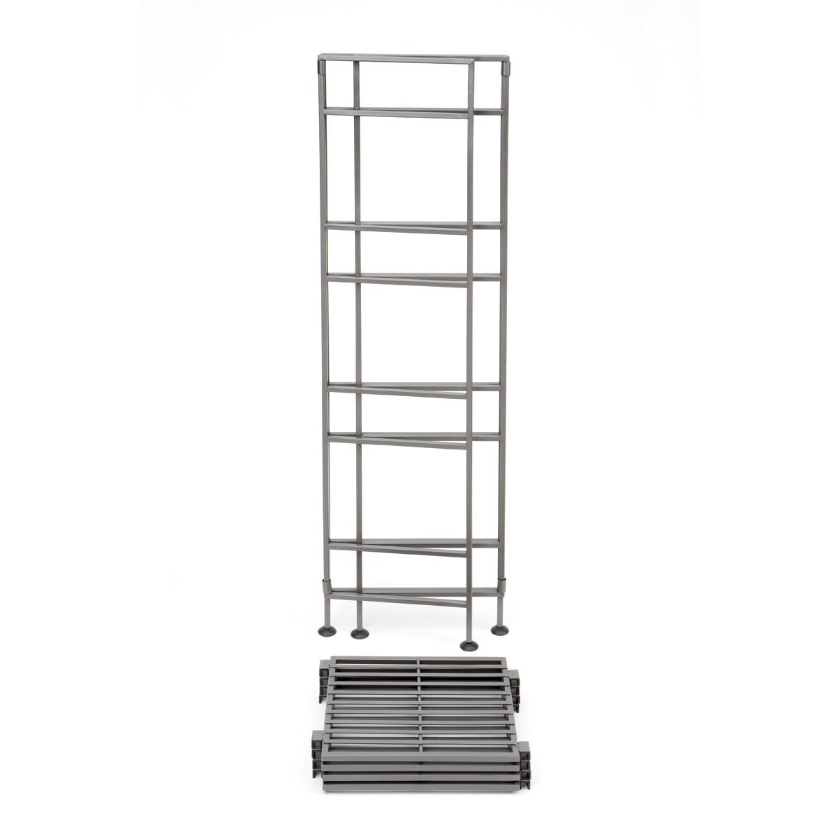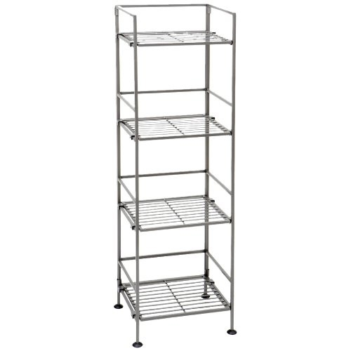 This 4-Shelf Iron Tower Storage Shelves – Great for Kitchen Office Garage is great for storing any items that you desire. Its contemporary style will add flair to your living room, bedroom, bathroom, kitchen or office! The wrought iron shelf folds flat for easy storage or transportation. With the new Snap-on feature, you can now connect multiple units horizontally for a complete custom fit.This unit measures 13-Inch by 11.24-Inch and 44-1/4-Inch high.
