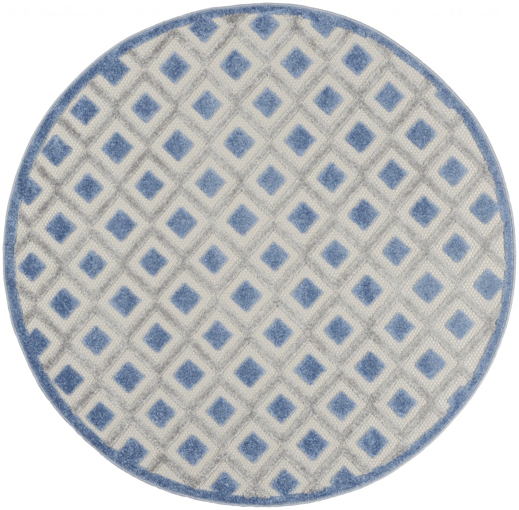 4?Round Blue and Gray Indoor Outdoor Area Rug