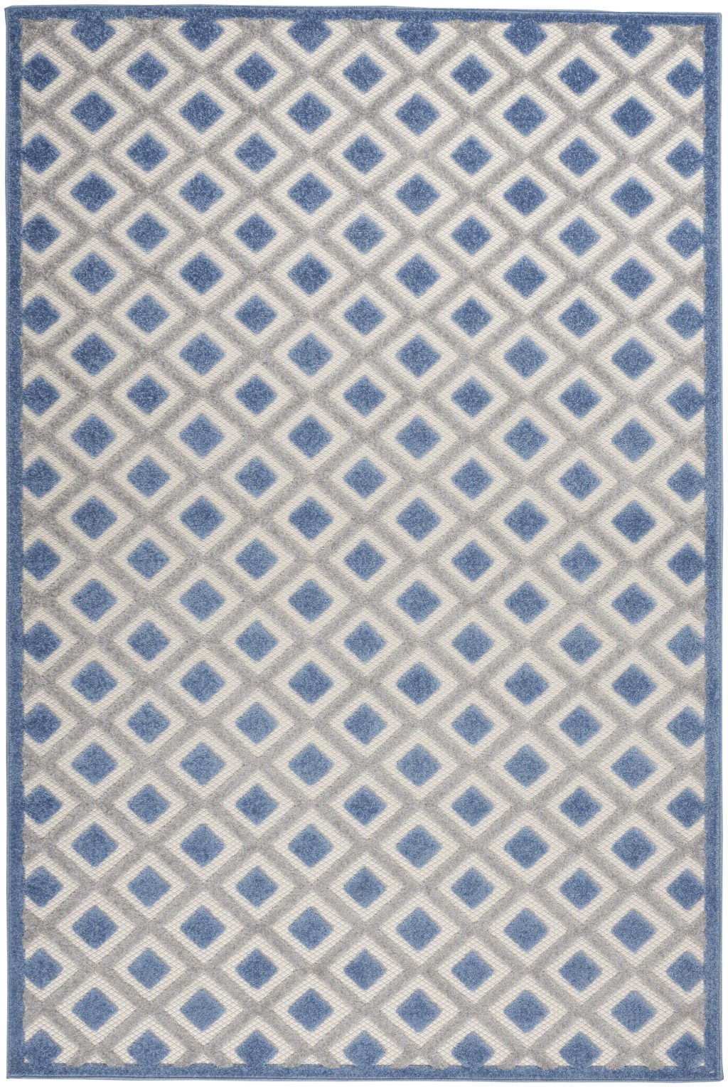 Simple and serene, this Blue and Gray Indoor Outdoor Area Rug will bring a calm and relaxing look to any contemporary interior. The all-over concentric diamond motif with a simple border is playful in its discrete elusiveness while exerting exceptionality. Flaunting the mix and match of shapes, with the use of blue and gray diamonds to create visual intrigue and entice the guests every time. This elegant rug is made in Turkey with special stain-resistant polypropylene material to ensure that it lasts for ages even in the most difficult outdoor conditions while being easy to clean. Place it against dark or light-colored floors and this versatile area rug will continue to stand out complementing the aesthetics of your modern decor. 3’6″ x 5’6″