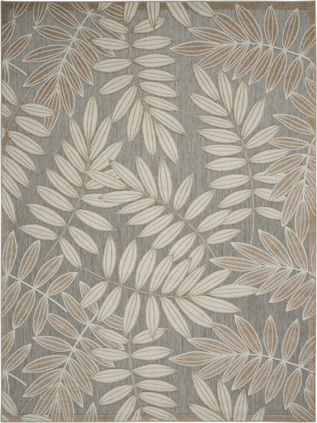 Introduce a subtle sophistication into your home with this stunning Natural Leaves Indoor Outdoor Area Rug that features a timeless color palette to uplift the aesthetics of a contemporary styling. Flaunting a distressed dove gray backdrop, the artistically designed leaves in beige and brown with reversed tones add to a coherent contrast that is pleasing to the eyes. Skillfully made in Turkey with 100% premium polypropylene that speaks for its enhanced durability, easy maintenance, and stain resistance to keep up with the external elements of your deck or patio, while the soft surface texture makes it an ideal piece to blend indoors. The understated elegance of this area rug will uplift the modern aesthetics of your home without being too loud. 3’6″ x 5’6″