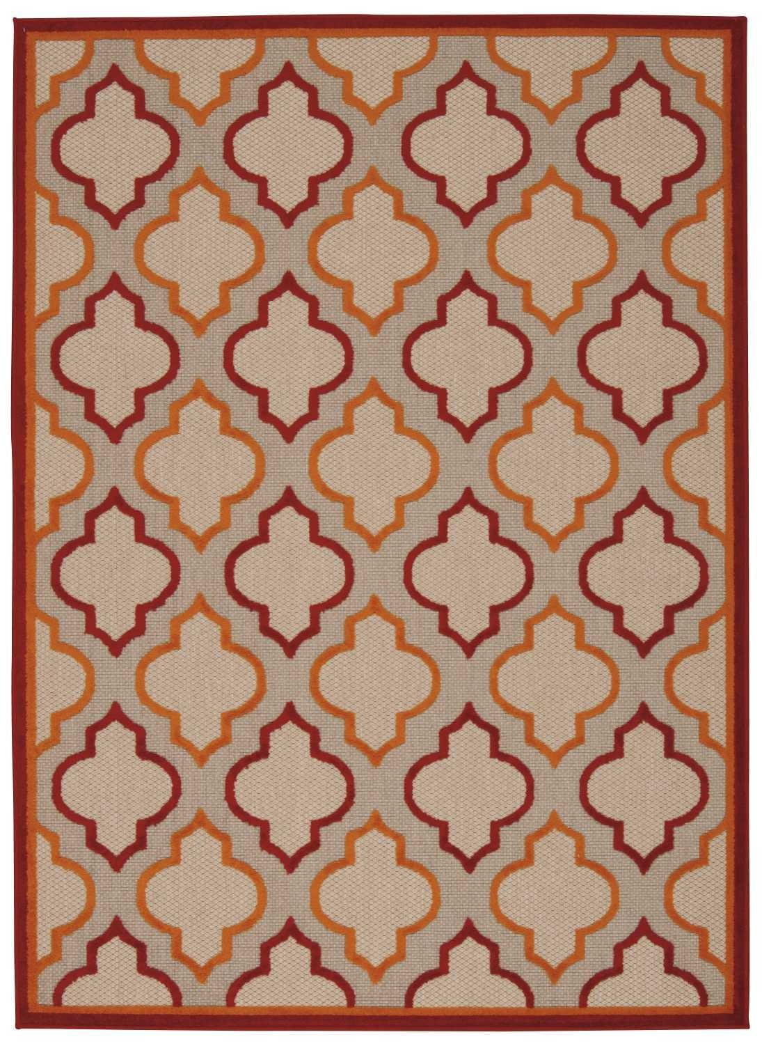 Make your living space welcoming and comfort-inducing while flaunting a blend of trend and traditional with this Red Trellis Indoor Outdoor Area Rug. The Moroccan trellis pattern is made using an exciting combination of red and orange on a beige ground to give an enticing look that complements any modern, contemporary, or vintage decor. This rug is made in Turkey with 100% polypropylene material to stand the test of time, resist stains, and stand up to external elements making it an ideal piece for high-traffic areas indoors and out. The flat weave surface with cut-pile patterns adds to its surface interest providing a soft underfoot that looks and feels luxurious on the touch. Transform your contemporary interior with the addition of this classic area rug that induces modernity with a touch of traditional appeal. 3’6″ x 5’6″