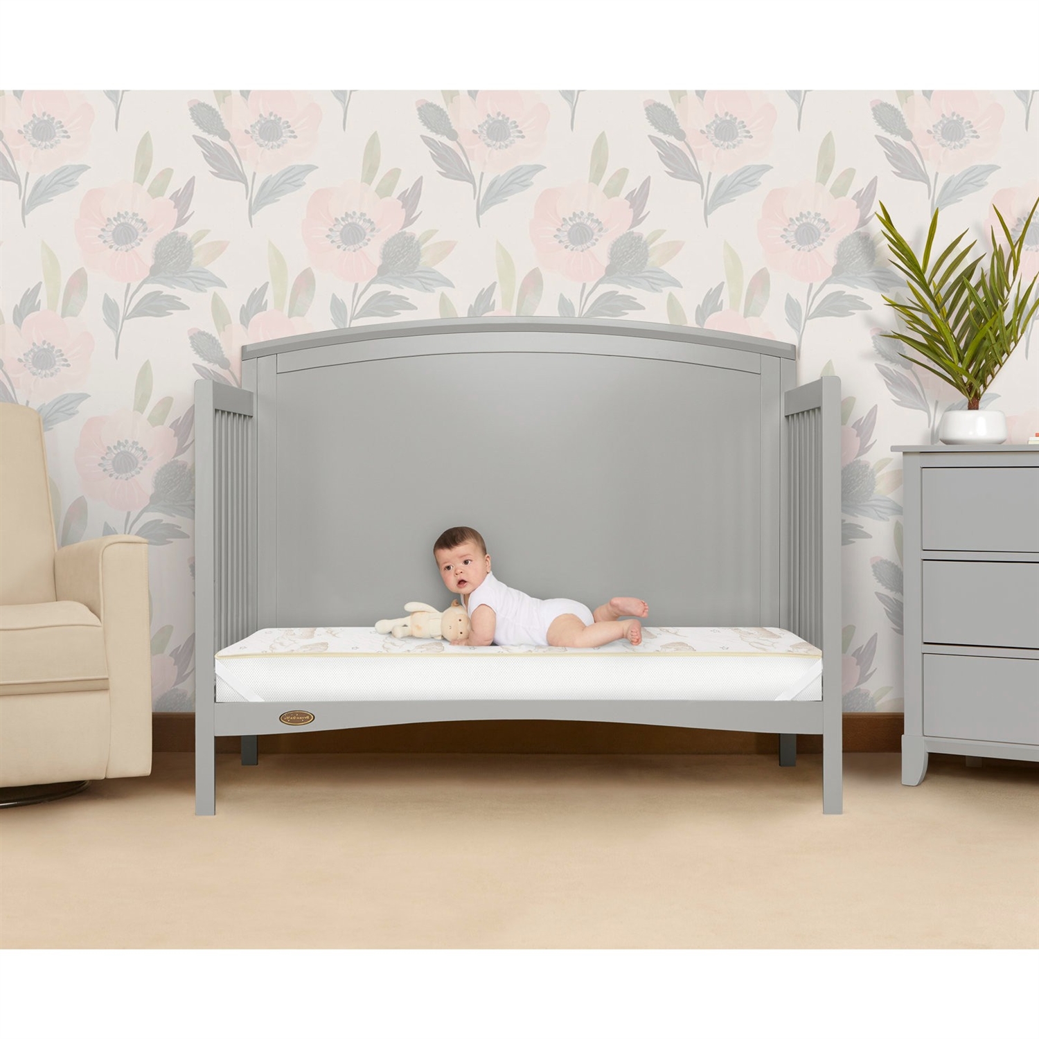 The 5 Inch Plush Coil Innerspring Waterproof Crib Mattress Made In USA introduces a breathe flow technology. Their mattress is designed to fit standard full size cribs it features a 80 durable, interwoven, heat tempered, steel coils providing supreme comfort ,hypo-allergenic, certipur-us certified layer for comfort these mattress are covered with a breathe flow material on the infant side and a waterproof cover on the toddler side with lock stitch seams. Meets the federal flammability standard. Rest easy knowing this mattress is tested for phthalate and lead and constructed with quality materials. This mattress has 2 Hypo-allergenic layers offer cushioned comfort for infants and toddler. Reinforced- waterproof cover and binding resist liquids and stains. Breathable mattress cover. promotes airflow. Laboratory tested for air/water vapor permeability. Safety Advice: please ensure mattress covers or fitted sheets are not too tight or loose over a crib mattress to practices safe sleeping
