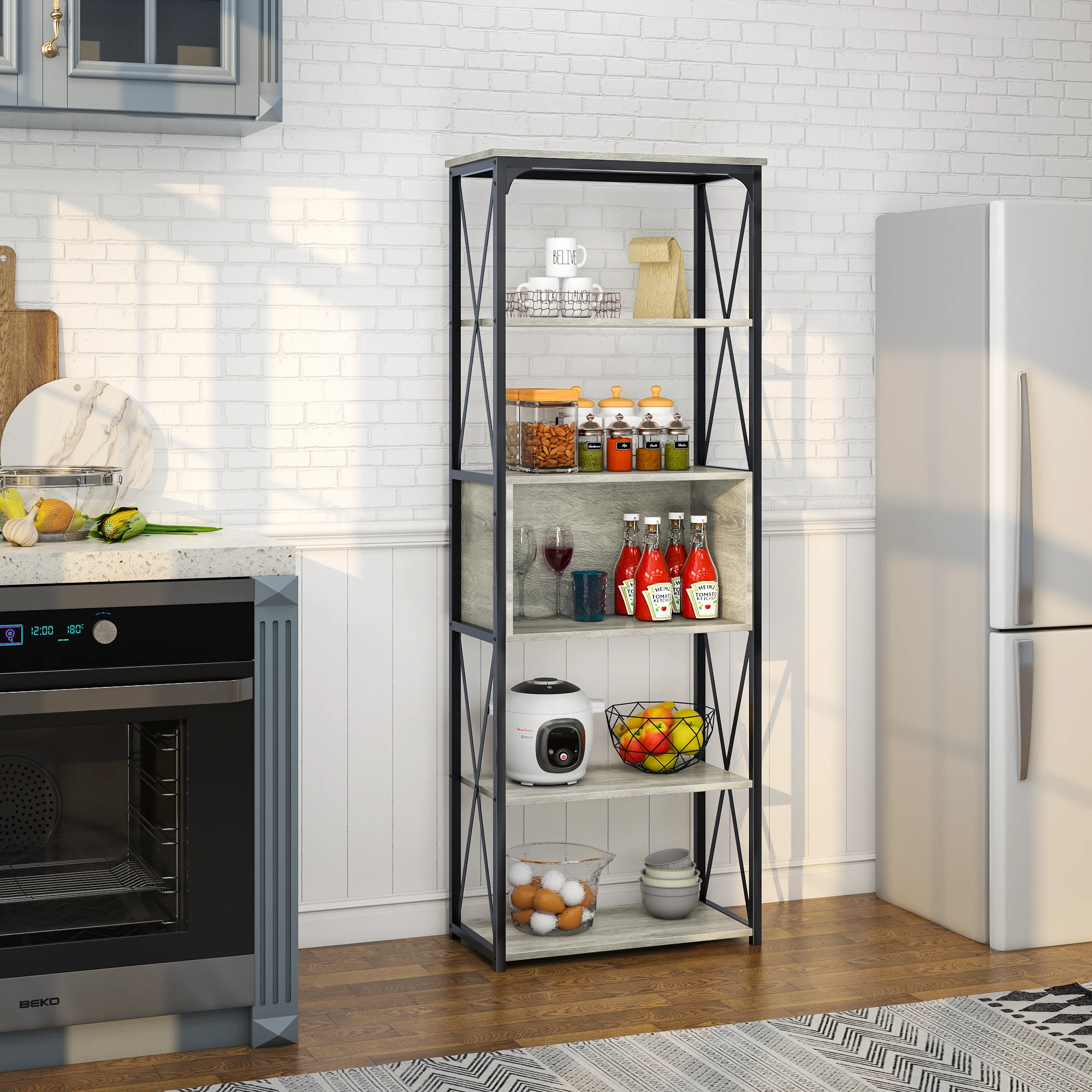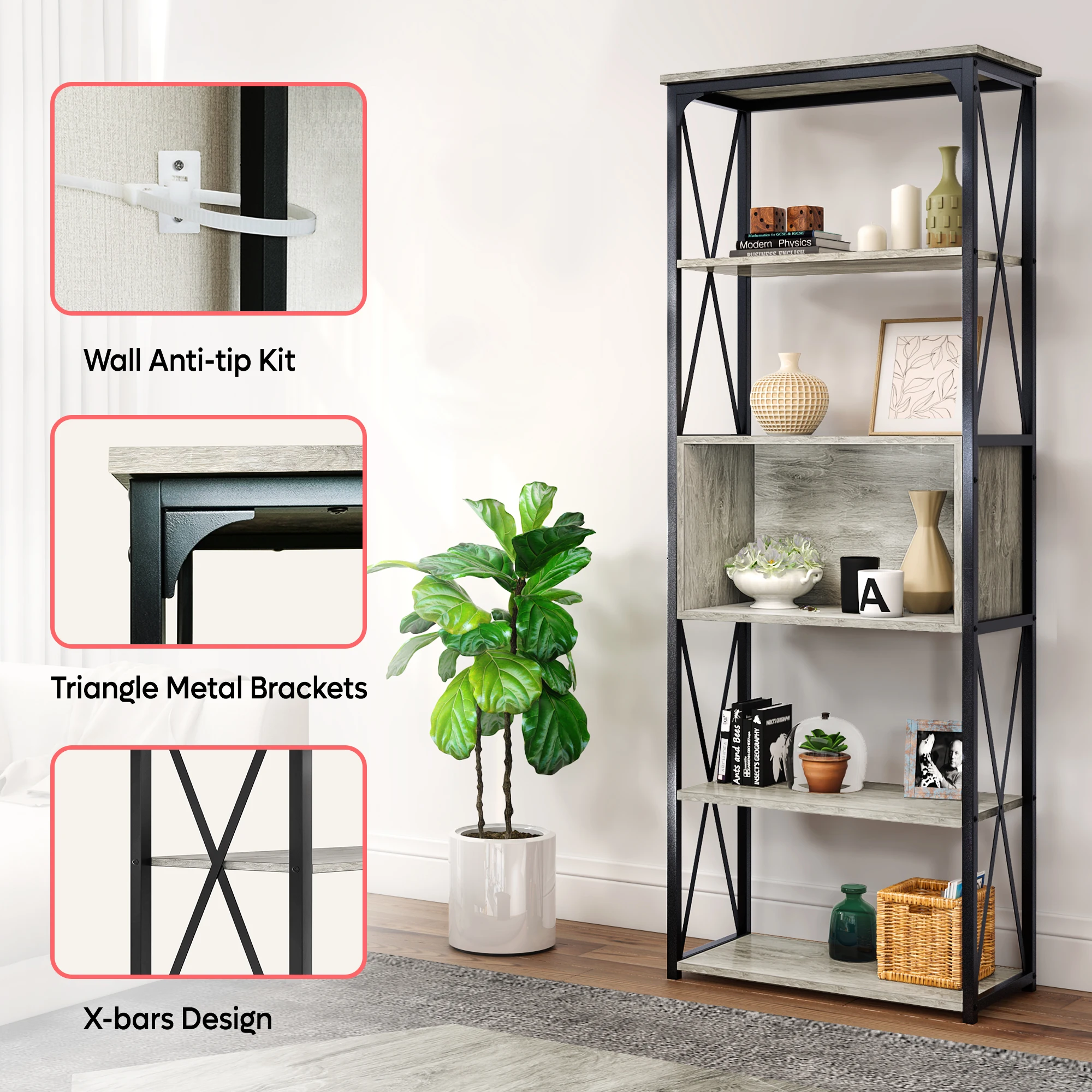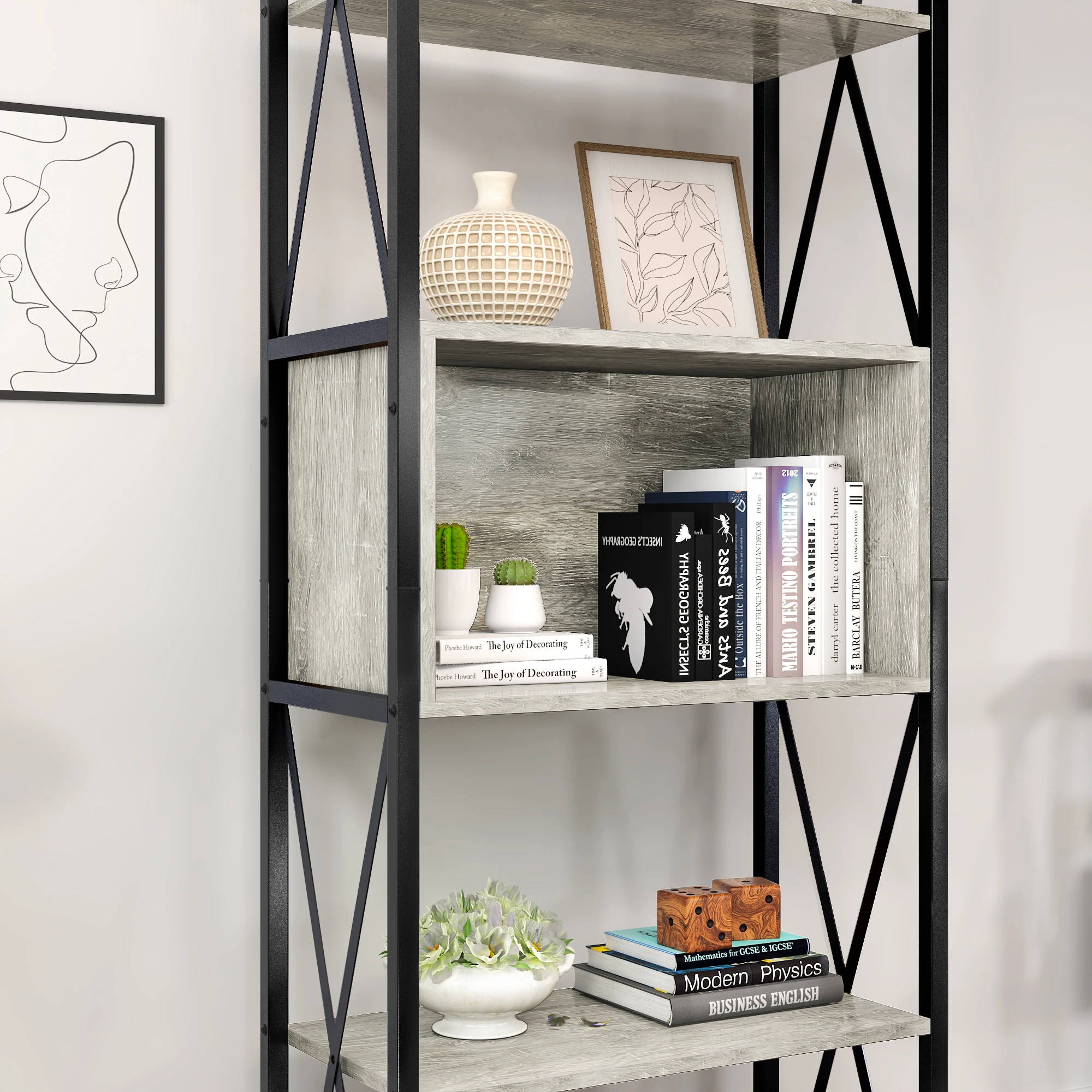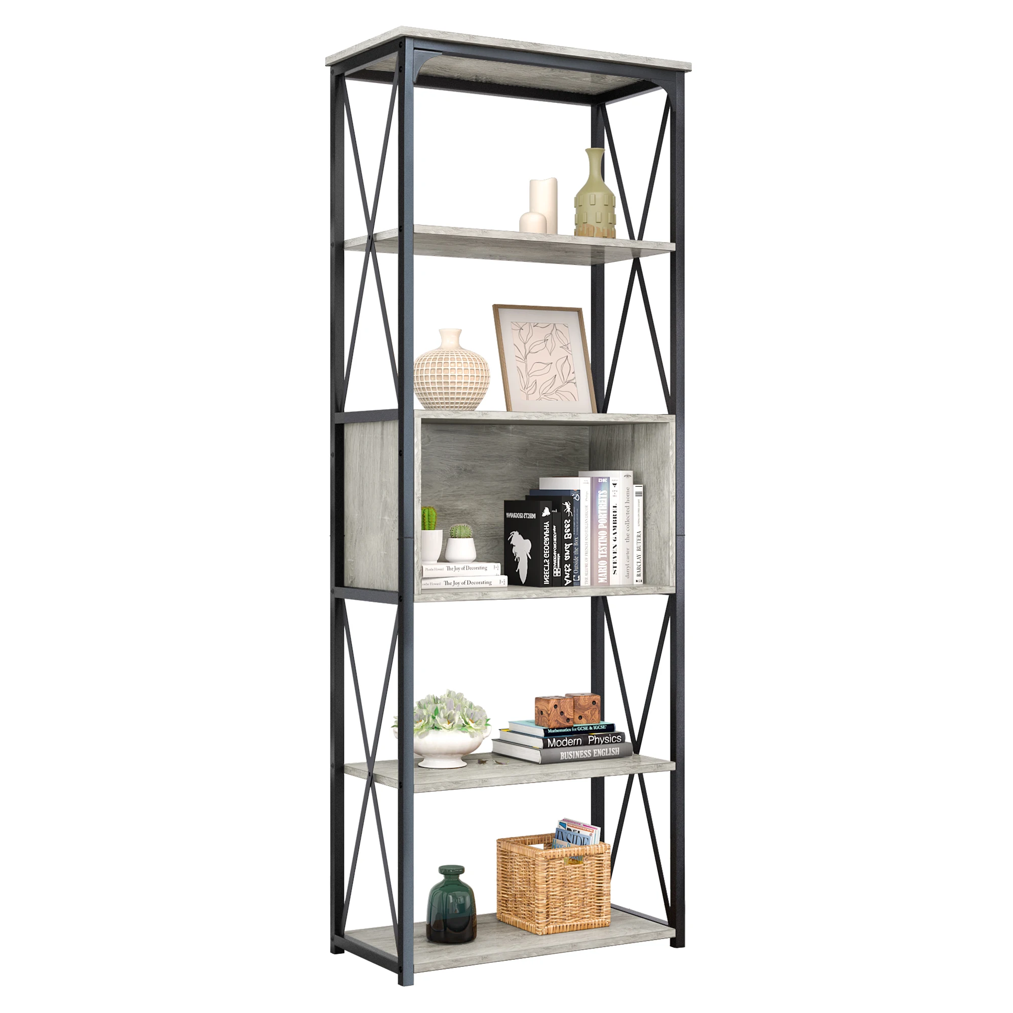 5 Tier Tall Bookcase Wood Storage Rack with Open Shelves Standing Shelving Unit for Bedroom Living Room and Home Office