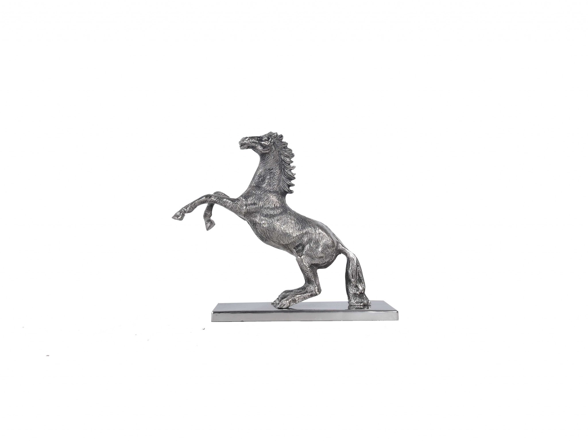the horse symbolizes personal drive, passion, and appetite for freedom. among all the animals, it is one that shows a strong motivation that carries one through life. this is a simple but highly detailed horse on a stand. made of 100% hand-cast in solid aluminum and topped with a nickel-plated finish, the horse becomes alive with its stunning hand-brushed details on the mane, body, and tail. if you want a powerful and dazzling decor piece than this is the one for you!