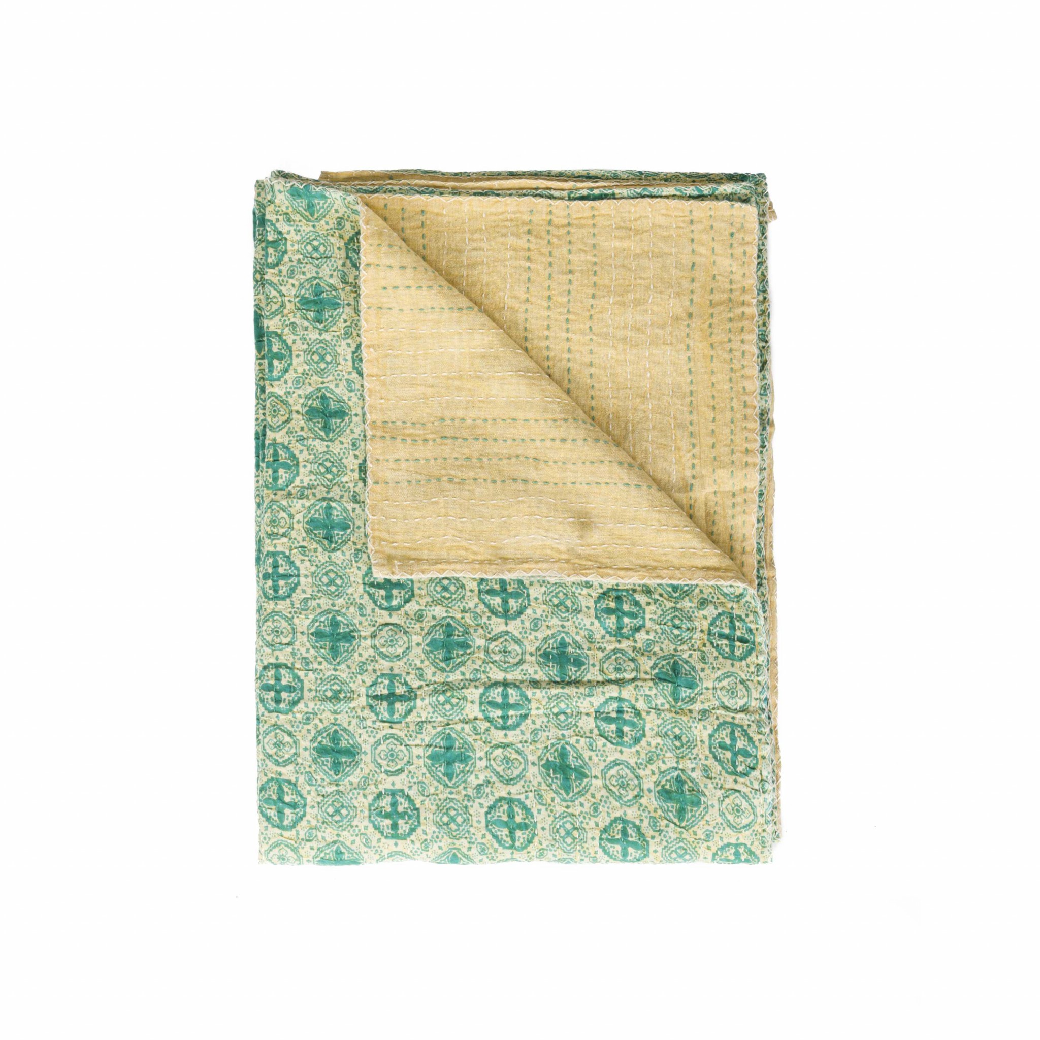 An elegant patchwork of vibrant design with an airy, lightweight feel, the Kantha series is visibly unique. Kantha embroidery is a time-honored artistic technique practiced for centuries by skilled Indian artisans.?Each piece is hand-crafted from several layers of cotton or silk held together by a running ‘kantha’ stitch. The luxurious materials, rich colors, vintage artistry and one-of-a-kind beauty of these magnificent throws will elevate the decor of any space.