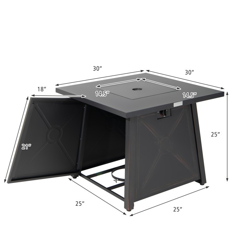 - Fire Pit Dimensions: 30 inches L x 30 inches W x 25 inches H