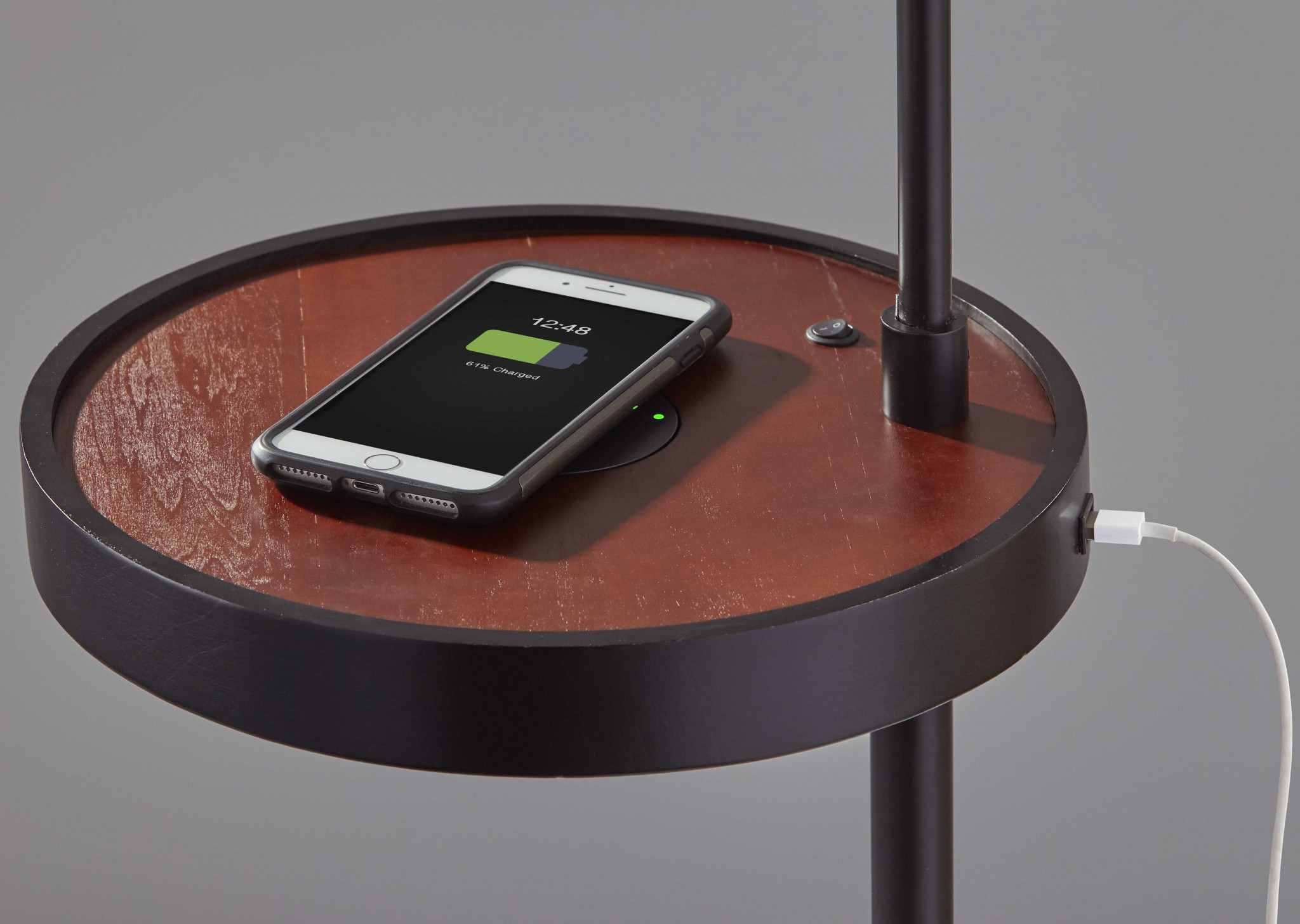 59″ Tray Table Floor Lamp With Black Cone Shade