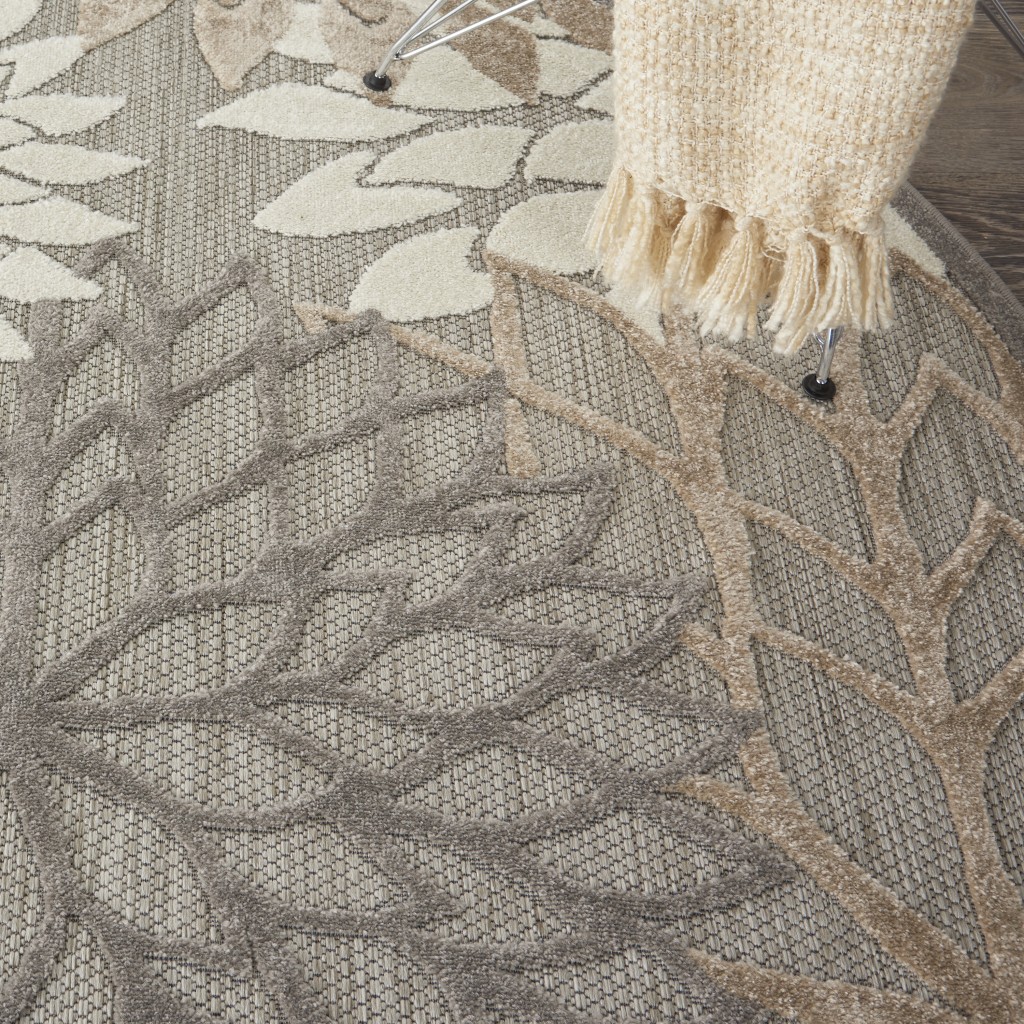 5?Round Natural and Gray Indoor Outdoor Area Rug