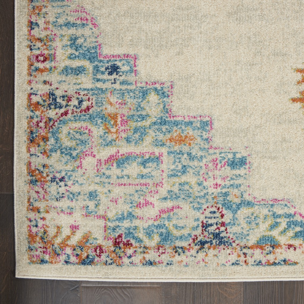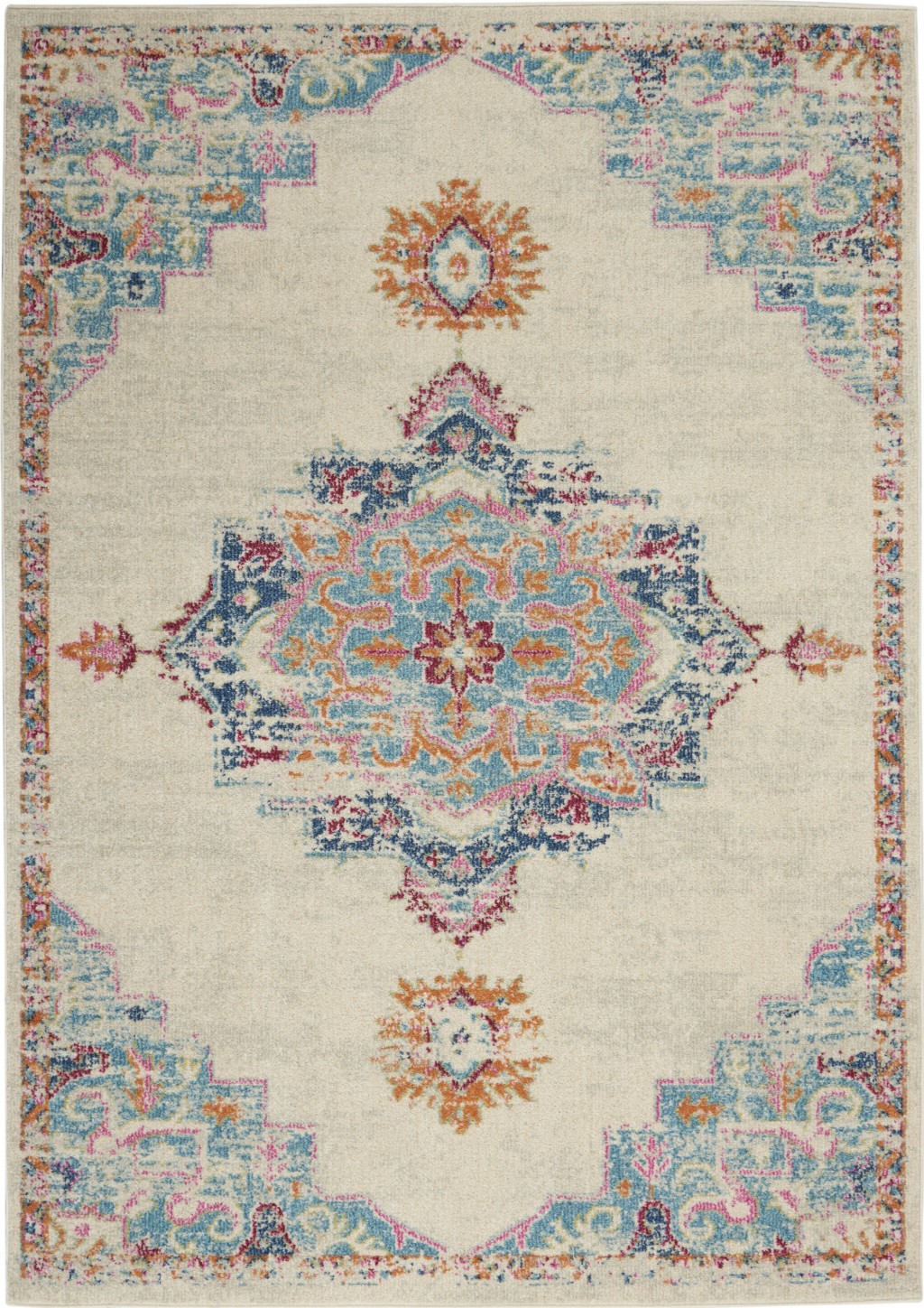 Soft on the eyes yet welcoming, this comforting Gray Distressed Medallion Area Rug will bring a colorful hint of Persian antiquity into your modern household. The soft gray textured base with bursts of pink, gold magenta, and turquoise make an amazing center-medallion pattern that pays homage to great Persian artworks and creates an amicable ambiance. Crafted with 100% polypropylene in Turkey, this brilliant rug speaks of its durability to stand up to indoor elements while being very easy to clean. This brilliant rug keeps on giving due to the advanced power-loomed construction and soft pile surface texture for a comfortable underfoot. Mix and match to your heart’s content with this unique area rug that goes with a variety of modern, traditional, and contemporary styles. 5’3″ x 7’3″