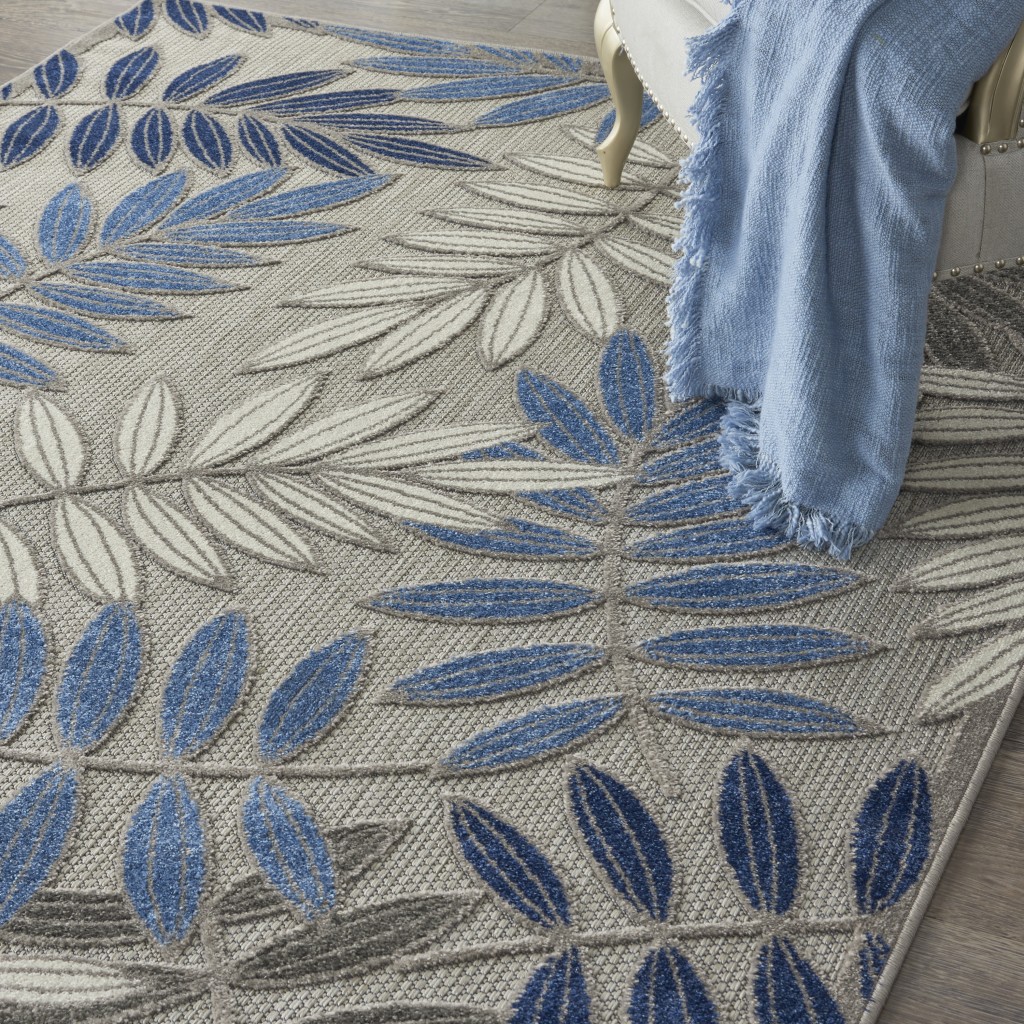 5?x 8?Gray and Blue Leaves Indoor Outdoor Area Rug