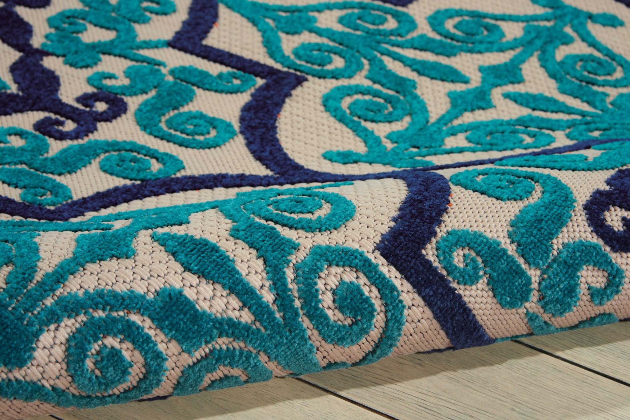 Bring home a sensual experience with this distinctive Navy and Beige Trellis Indoor Outdoor Area Rug that exerts fine taste and thoughtfulness to spruce up your living space. The trellis pattern creates a sense of greeting and grandeur with its immaculate use of teal and black lining lying on a soft beige base with navy blue edges. Originating from Turkey, this fine piece is made with transitional styling in mind while incorporating 100% polypropylene to produce unquestionable longevity and a seamless cleaning experience. Made to last long in the most demanding conditions and provide a soft underfoot, this rug features a flatweave surface with cut-pile construction for added texture which makes it an ideal accent for indoors and out. Roll this timeless area rug on the floor to add a sense of modern grace and traditional taste to your casual interior. 5’3″ x 7’5″