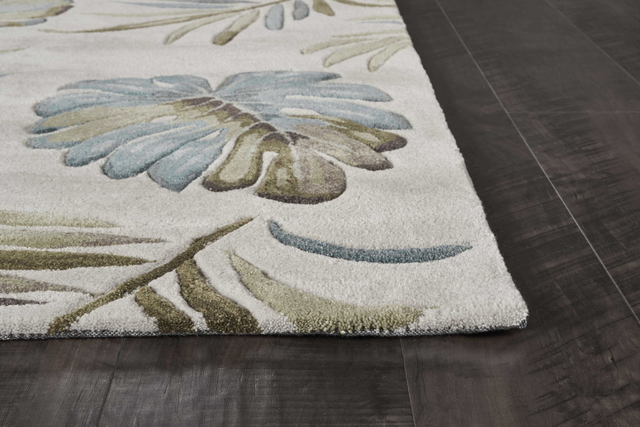 5’x8′ Ivory Hand Tufted Tropical Leaves Indoor Area Rug