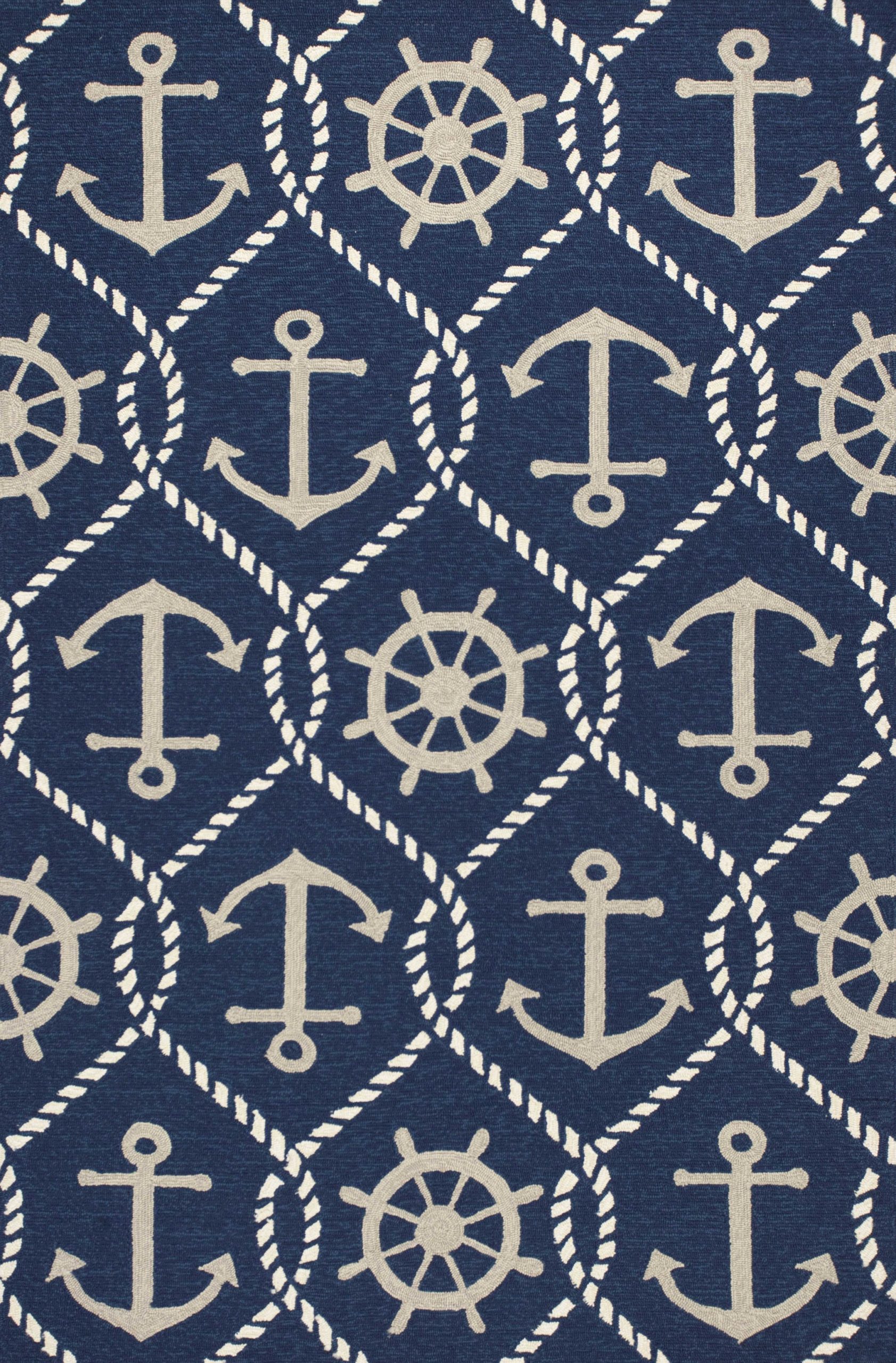 5’x8′ Navy Blue Hand Hooked UV Treated Nautical Indoor Outdoor Area Rug