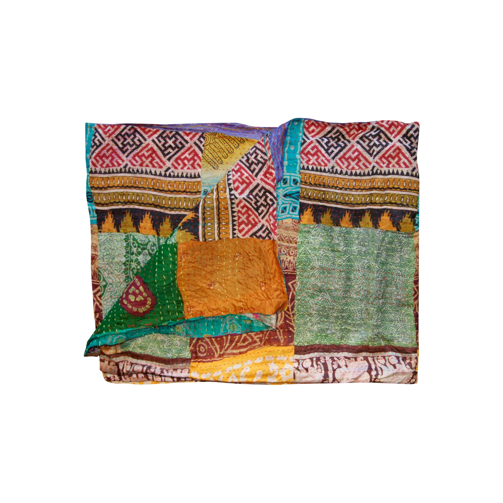 Fill your room with love, warmth and aesthetics with this charming throw. Appealing in colors and extravagant in textures, our throw is an output of the embroidery well-known to be an ancient creative art practiced by skillful Indian artisans. Made from many high-quality strands of silk or cotton, each unit is finished through a running stitch to create a unique pattern and look. This beautiful patchwork piece comes with a creative design that will add warmth and luxury to your room. – 100% cotton – Hand crafted – Technique: quilted – Can be used in a variety of ways: as a blanket, table cover, wall hanging, tapestry, beach cover and more – Hand wash cold water – Some variance in size and color may occur due to the one-of-a-kind vintage nature of this product – Made in series, individually packaged – Not from recycled material, new fabric – Enzyme washed – Unique, vintage, great hand feel.
