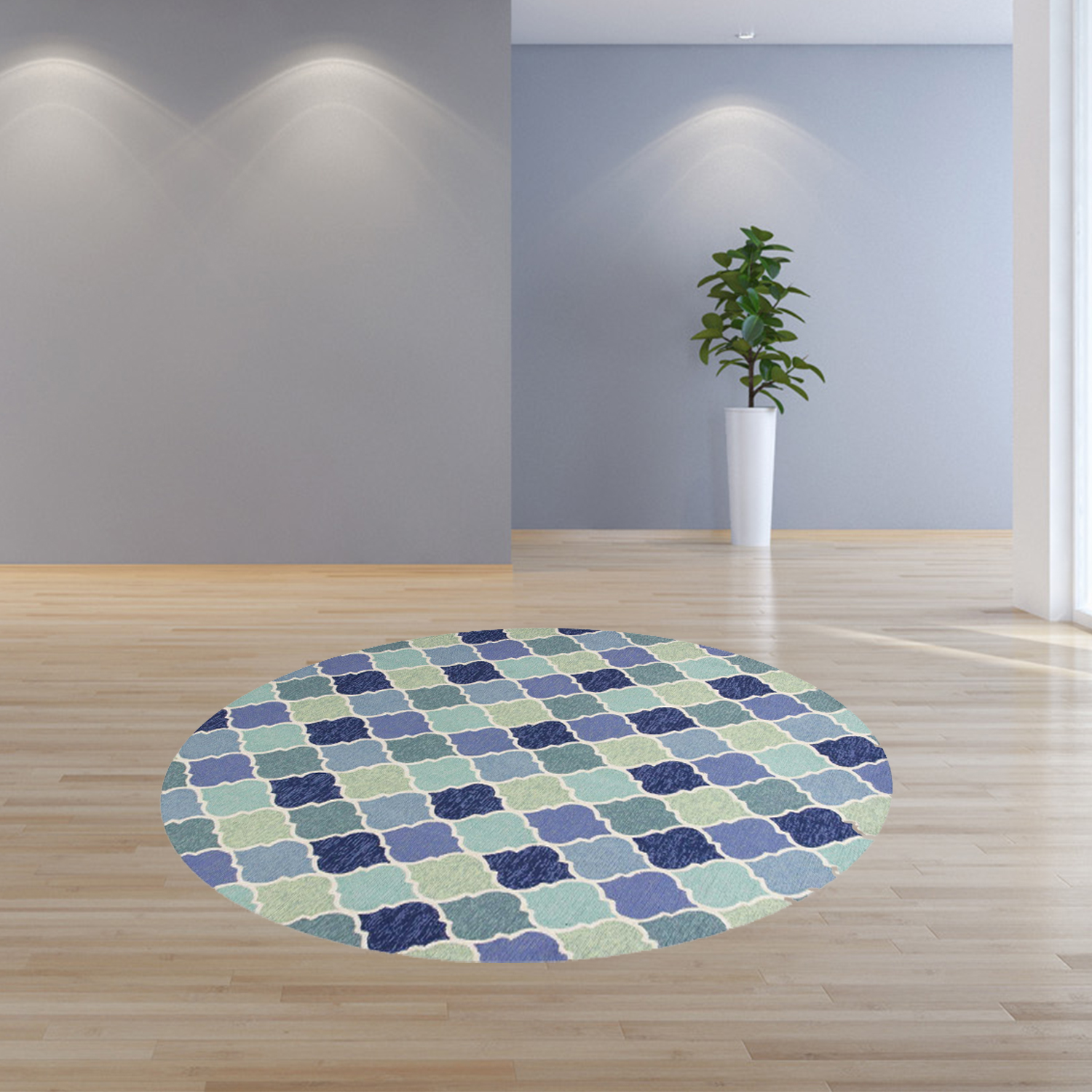 7′ Round UV treated Polypropylene Blue Area Rug