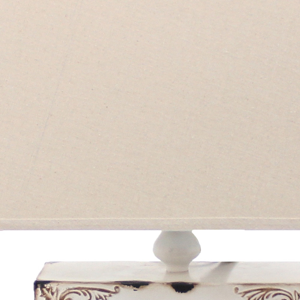 functionality combined with decorative appeal, this table lamp with metal clock base is designed to be a great addition to every home and office. featuring at its top a beautifully distressed white table lamp and at the base a functional metal clock, all making this masterpiece the best tabletop accent for your study or office decor. – vintage collection – metal clock base – beige linen shade