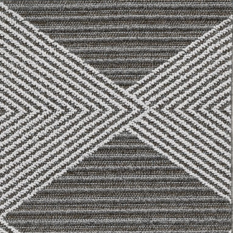 Refresh your outdoor living space with one of our transitional rugs. This rug is easy to decorate with, easy to clean, and easy to love? These rugs will rejuvenate any living space whether indoors or out. This is machine woven in Turkey of UV-treated polypropylene with texture and has a low pile height of 1/4″. This 31” x 93″ grey/ivory diamonds runner is machine-woven of UV-treated polypropylene with no backing. Vacuum with floor attachment if needed. Blot spills immediately. Spot clean stains with mild detergent and white cloth. If used outdoors, rug can be hosed off and dried on a flat surface.