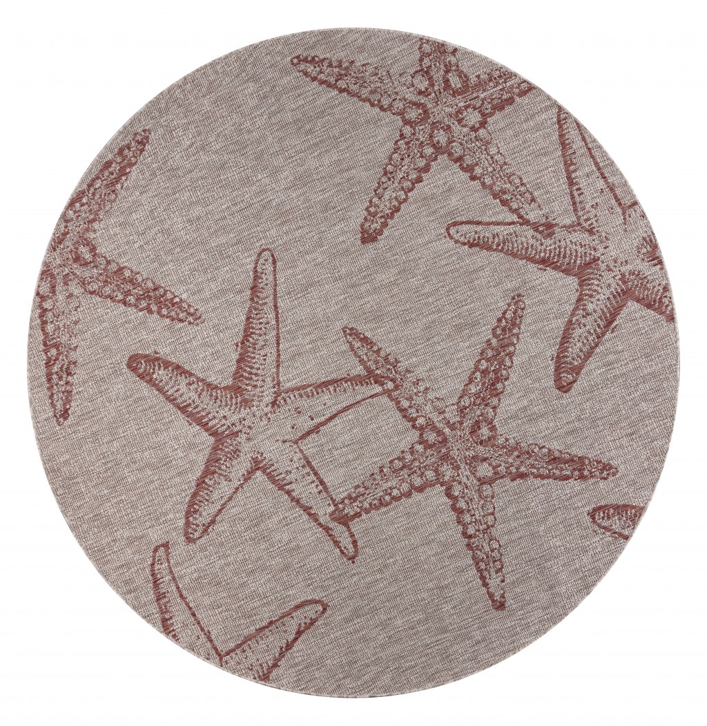 8?Round Red Starfish Indoor Outdoor Area Rug