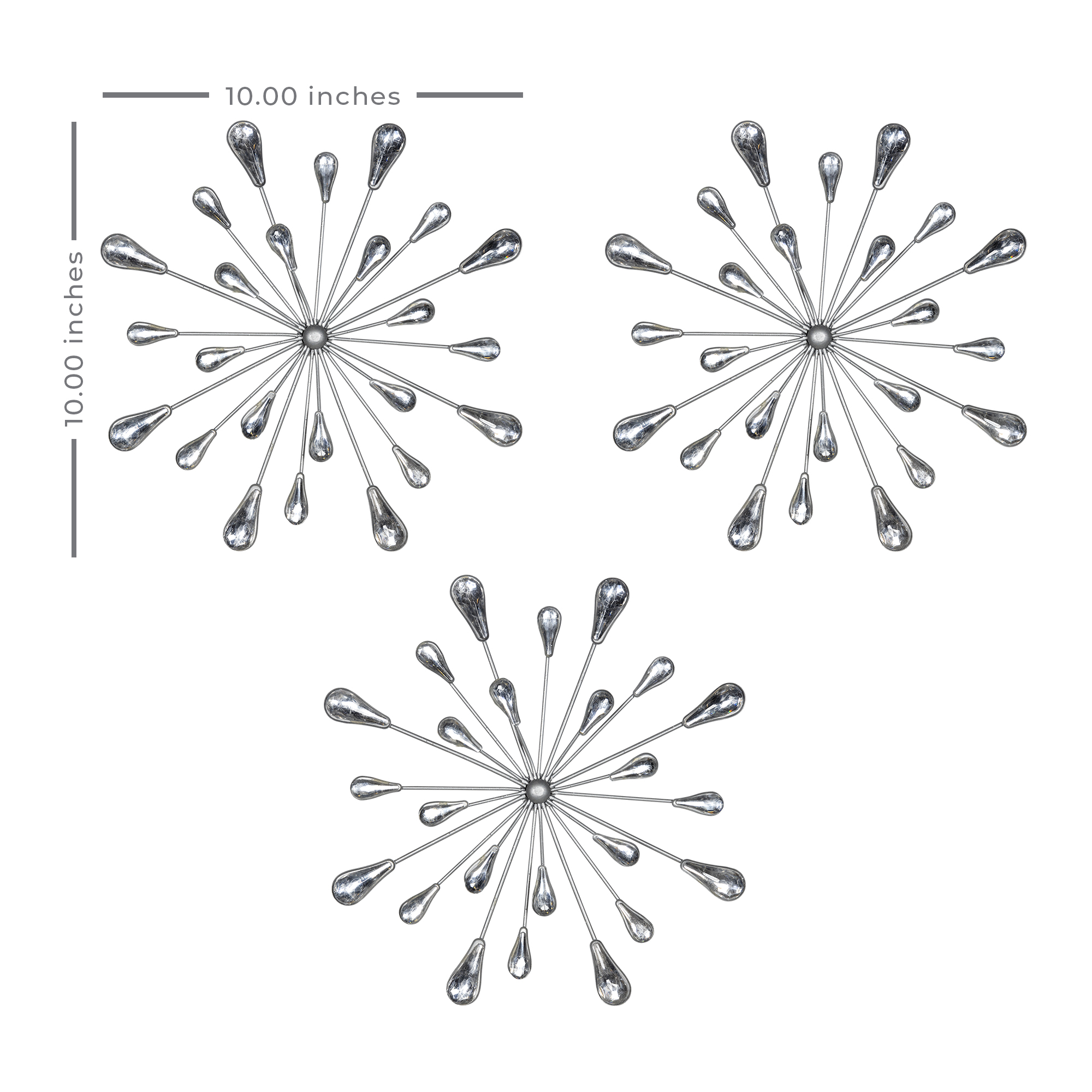 Let your interiors glimmer with this set of decorations. It features 3 burst-style ornaments, each one showing off silver rods that shoot outwards. Each rod is given a shiny acrylic embellishment, which gives the whole piece a sparkly appearance.