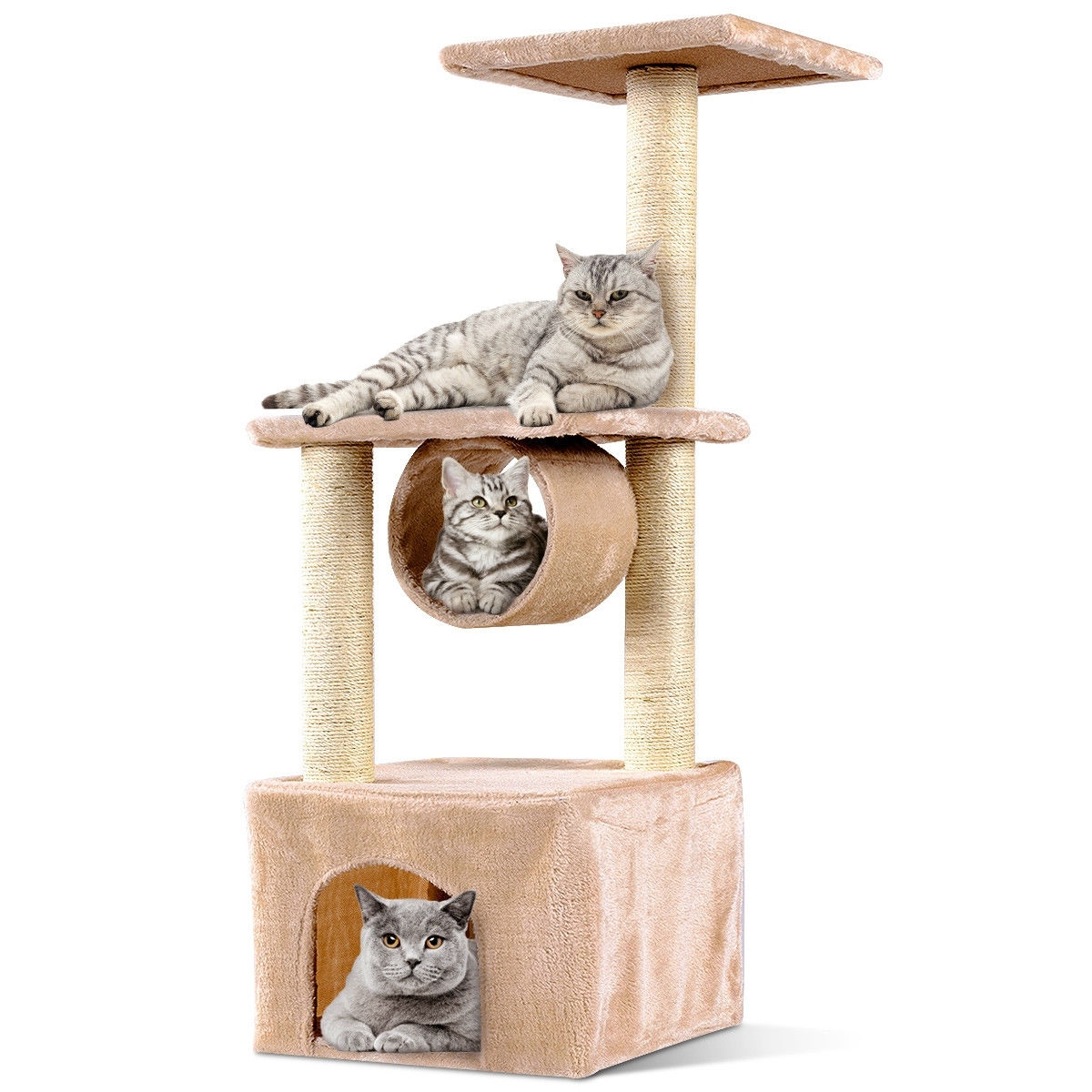 Beige, 37 Inch, Cat Tree, Condo, Kitten, Play House, Scratcher Post