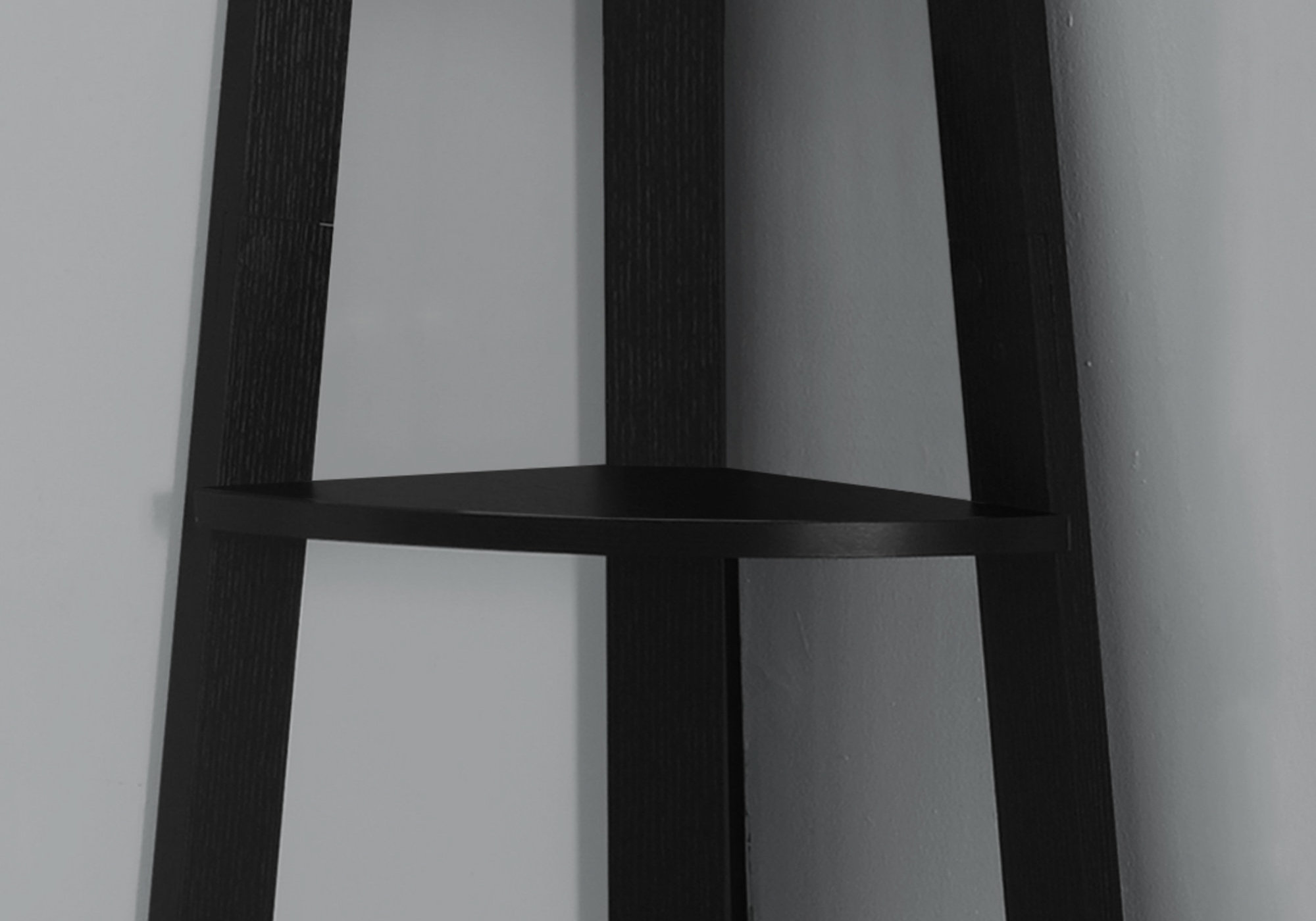 This Black Five Tier Open Corner Bookcase is the ideal tool for those who wish to give a spark of modern charm to their rooms. Its design gives it a predominantly contemporary feel, which it in turn grants to wherever it finds itself. Beside the intriguing and contemporary style in which it was designed and built, the bookcase also has ample storage space on its five shelves, for stashing books, photographs, magazines, or even small plants. It will add warmth and style to any place, and the contemporary look of this corner bookcase gives it the ability to blend in any environment, including an office, or a living room. 71.25″ x 15.5″ x 22.5″