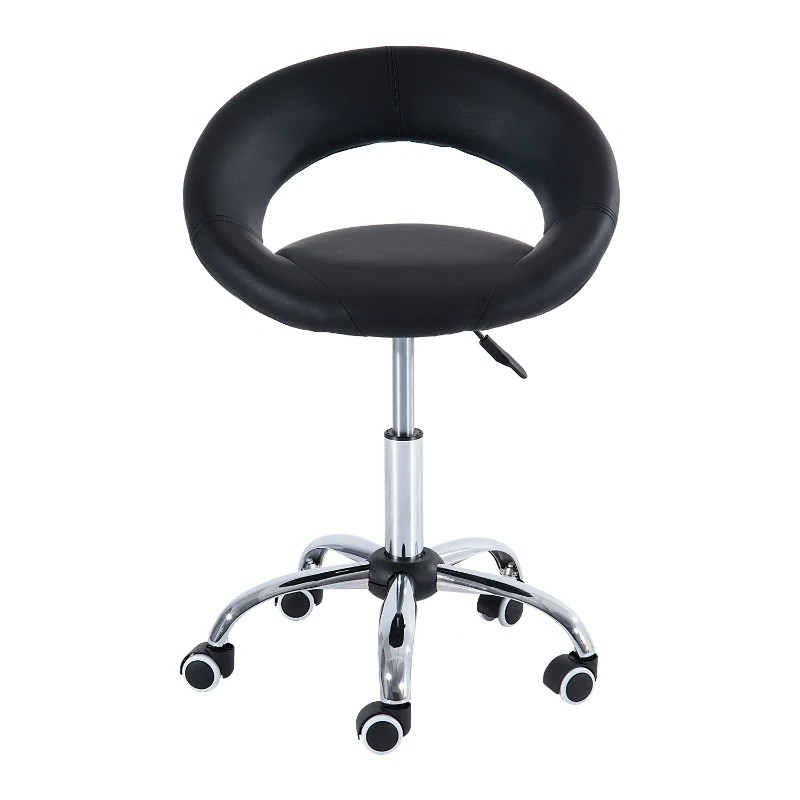 Ideal for massage theripist, salons, tattoo parlors, doctor, or dentist offices. This Black Saddle Adjustable Hydraulic Rolling Swivel Massage Salon Stool Chair will provide support stability and freedom of movement during long hours of seated work. A fully adjustable gas lift lets you find a comfortable height while working and is especially handy when working with clients of varying heights in salons or tattoo parlors. The high density 2 inch foam seat cushion helps to encourage good posture and support your back and legs. The full 360 degree swivel and dual wheel casters allow this stool to glide easily across floors without having to stand up.